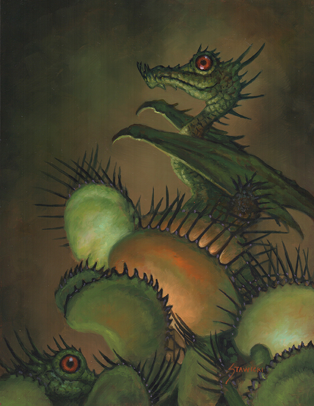 His freelance illustration career began in Asia in 1983 with covers for the Far Eastern Economic Review and Asiaweek. He then turned to fantasy and sci fi art, painting seventeen covers for the Magazine of Fantasy and Science Fiction, the 50th anniversary cover of Dune, paperback covers for Larry Niven, Jerry Pornelle, Steven Barnes, and Gary Gigax, as well as paintings for National Geographic and NASA. Additionally he painted many covers for Spider magazine and room-sized murals for Children’s Hospital in Seattle and the Beaverton, Oregon Library. During this period he participated in Boskone and Philcon and was included in multiple fantasy and science fiction shows mounted by the Delaware Art Museum and Olympia and York. His fantasy work was the subject of a Water Street solo exhibition in the New York financial district.