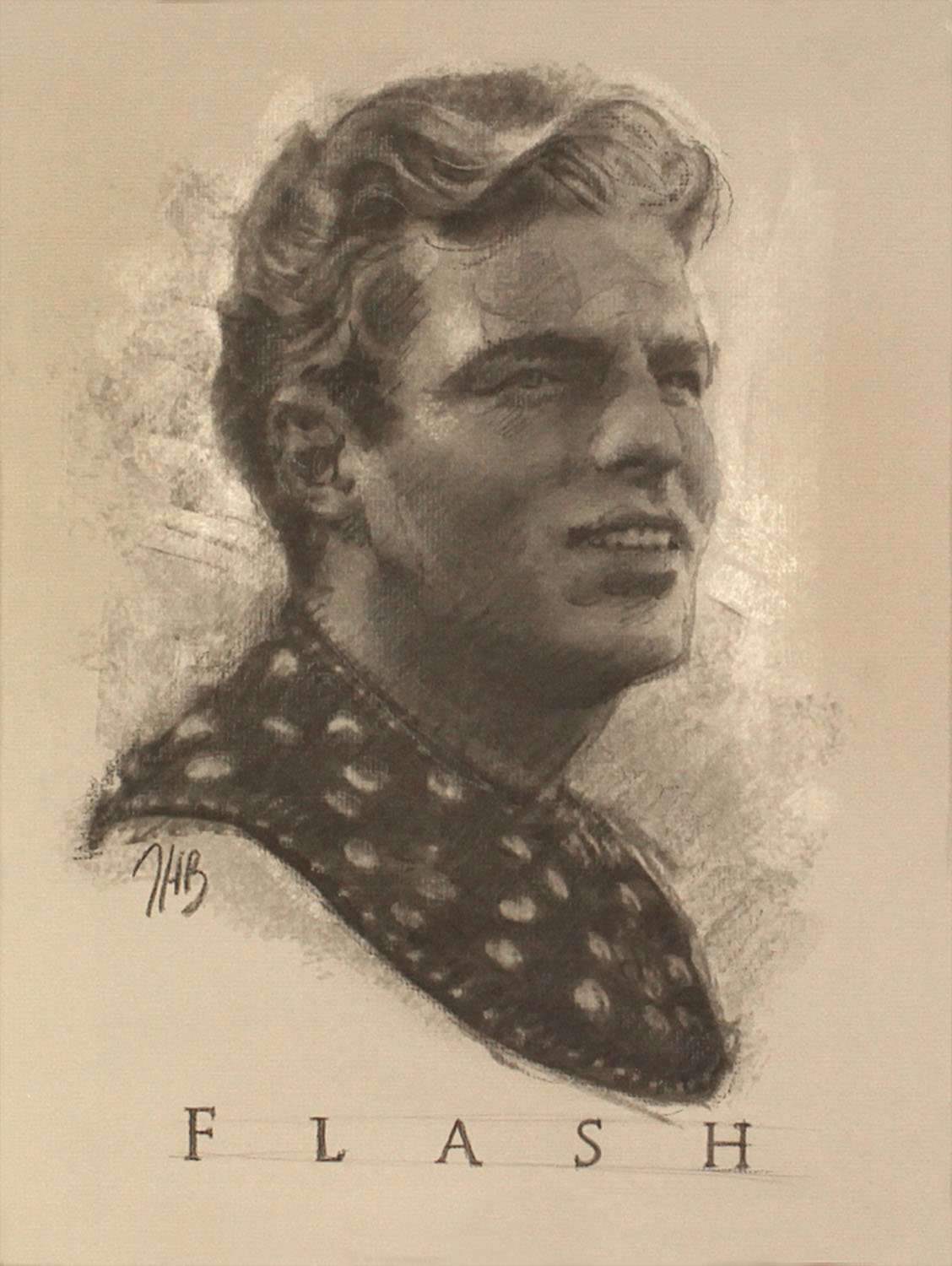 11 x 14 inches, charcoal on paper. SOLD ONLY AS A SET AS FLASH, DALE & MING - PRICE IS FOR ALL THREE PIECES.