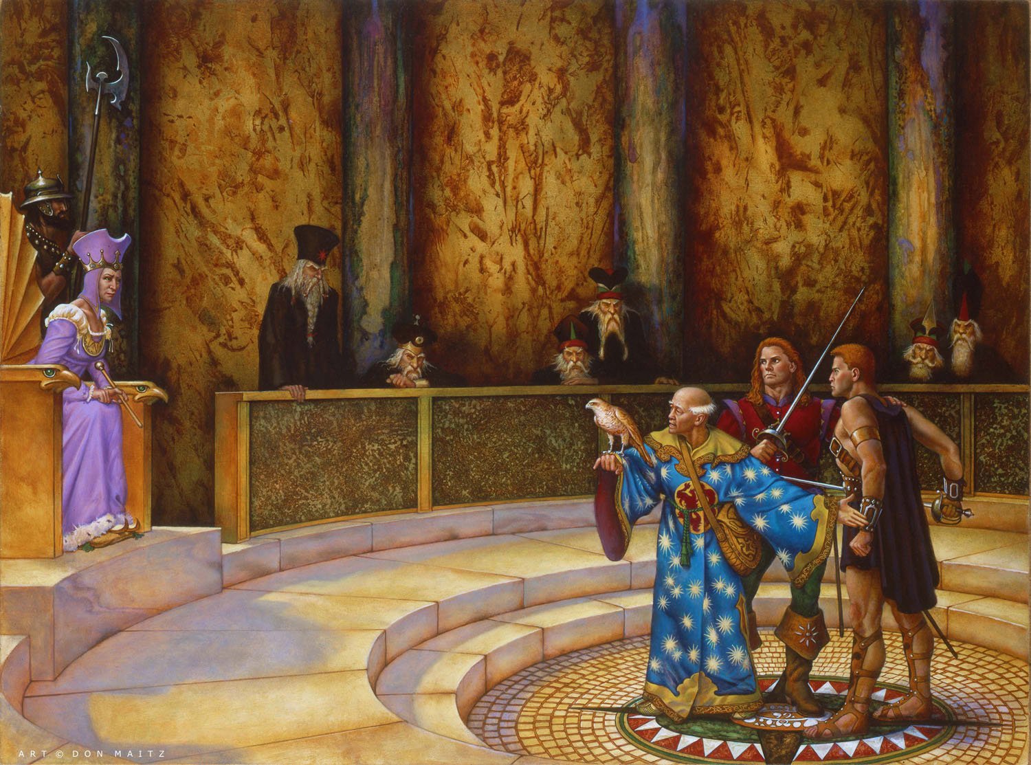 22.5 x 30 inches, oil on panel. Framed. Cover for Raymond E. Feist's PRINCE OF THE BLOOD, Bantam Books, 1992.