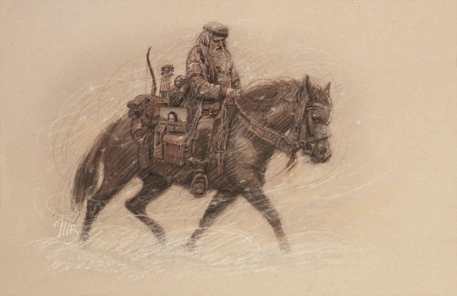 13 x 11 inches, conte on paper.