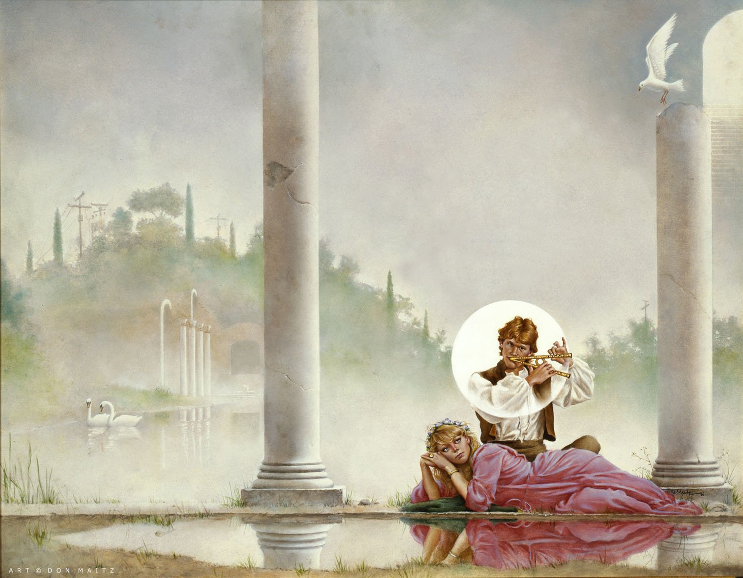 23 x 31 inches, oil on panel. Framed. Cover to Richard Cowper's A TAPESTRY OF TIME, Pocketbooks, 1986.