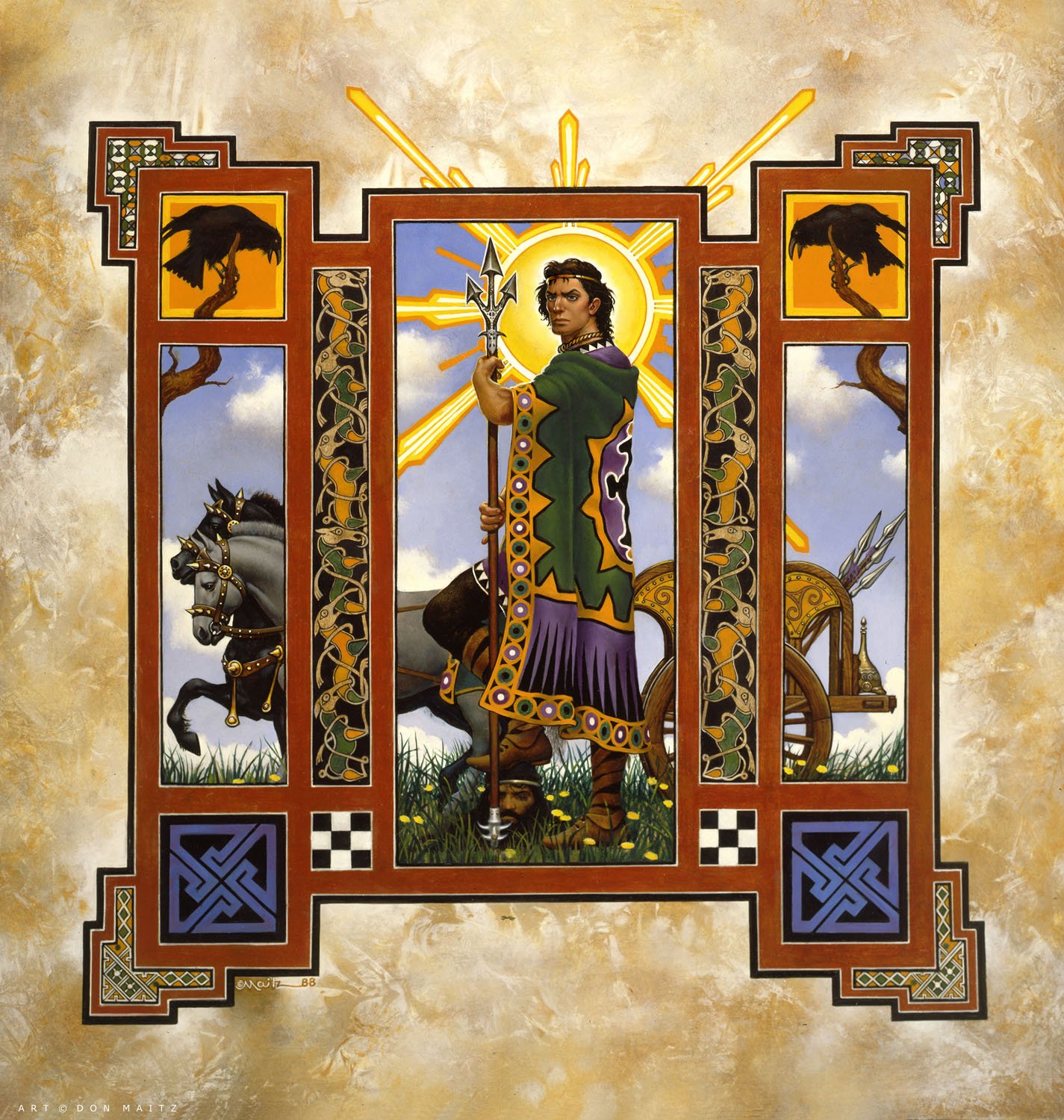 20 x 20 inches, oil on paper. Framed. Cover to Morgan Llywellyn's RED BRANCH, William Morrow, 1988.