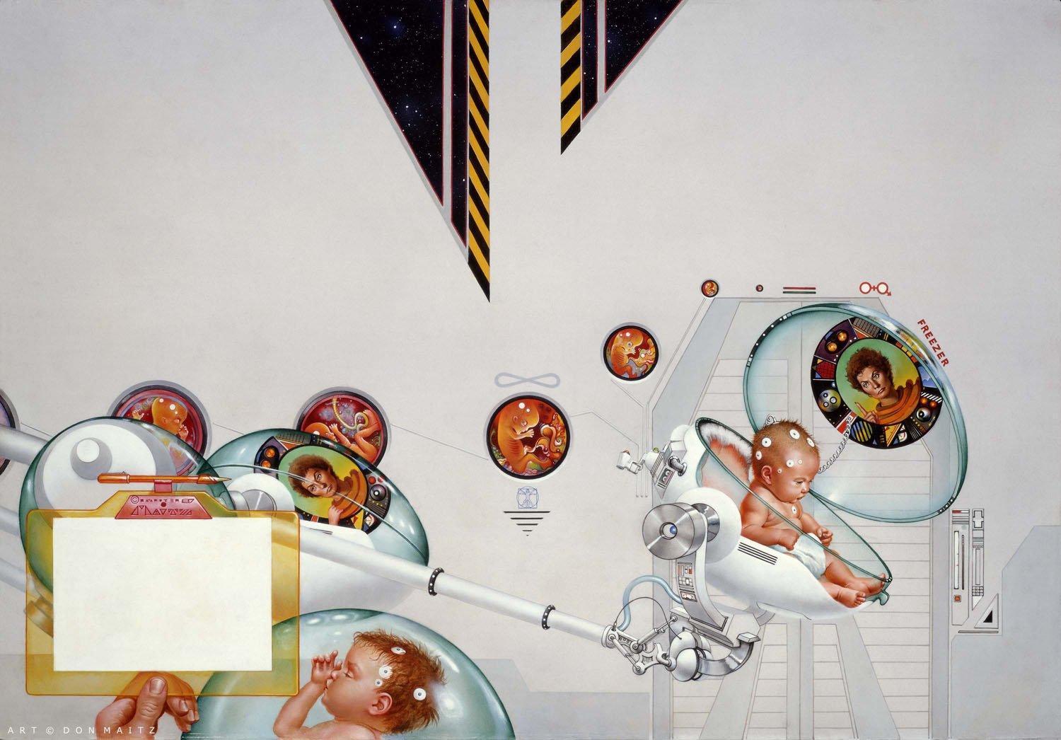22 x 32 inches, oil on panel. Framed. Cover to CJ Cherryh's Hugo-Award winning book, CYTEEN, Warner Books, 1987.