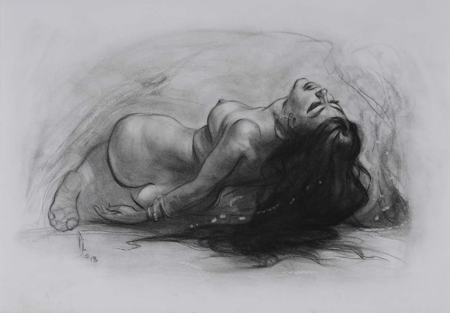 11.69 x 16.53 inches (A3 size), charcoal pencil on archival paper. 2018.
