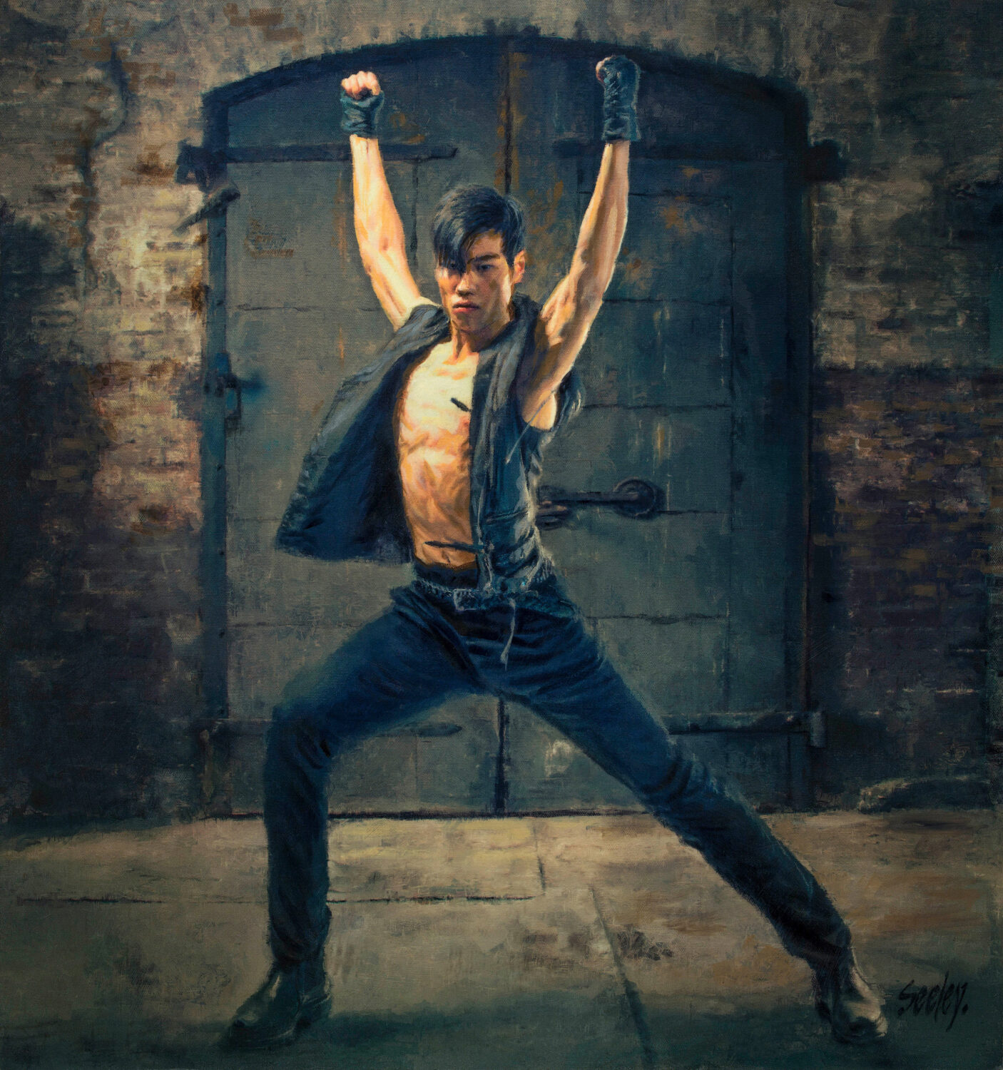 Afterlife: Fist of the Dragon - Insight Editions -This is from a personal series set in a post-zombie apocalypse. It was painted for, and published in, The Art of Dave Seeley. Oil onCanvas on Panel - 23 1/2" x 24 1/2" image area - framed in silver distressed Larson Juhl hardwood .
