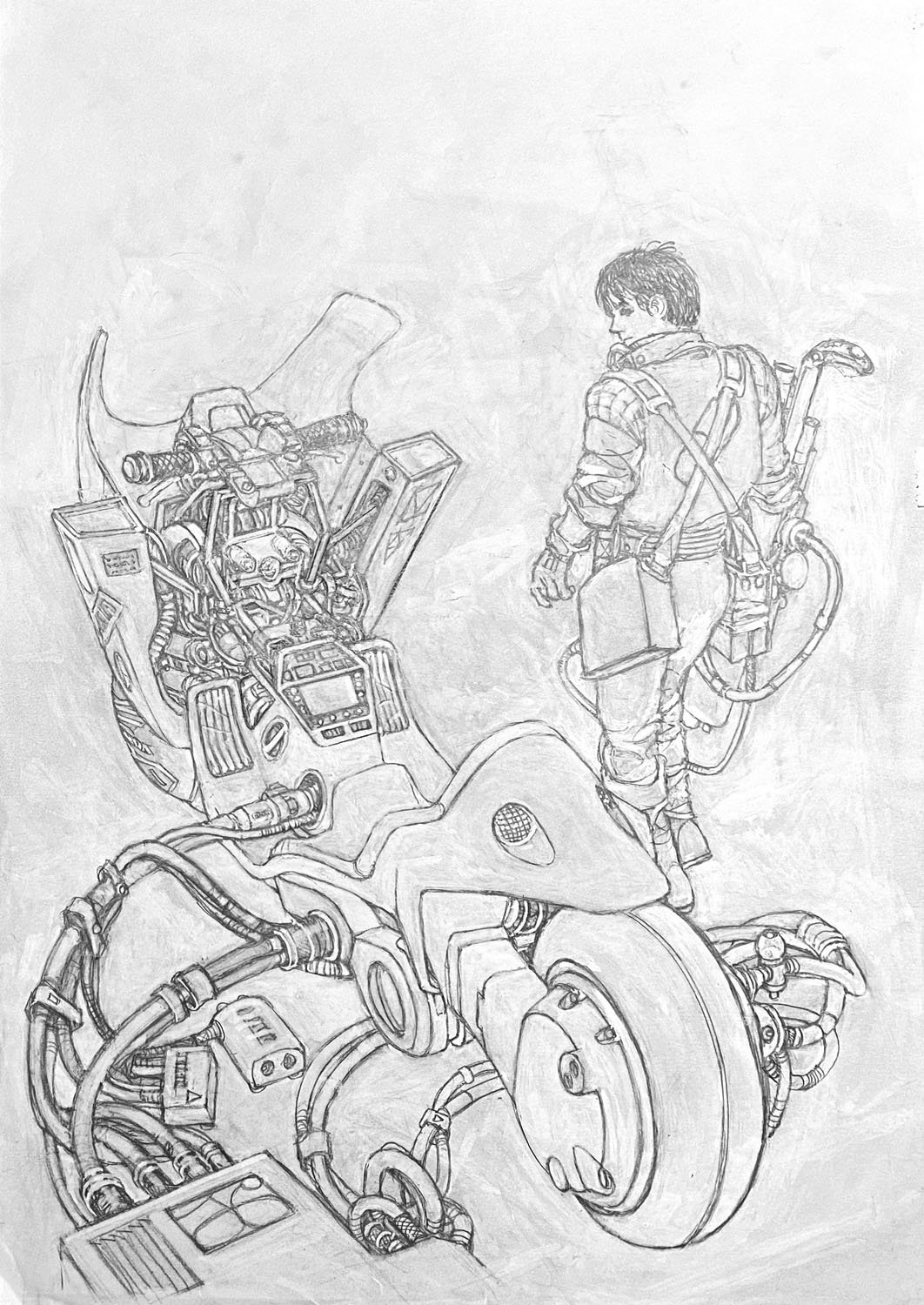 16.5 x 11.8 inches, pencil on paper Preliminary drawing for Gimenez's tribute to "Akira" creator Katsuhiro Otomo
