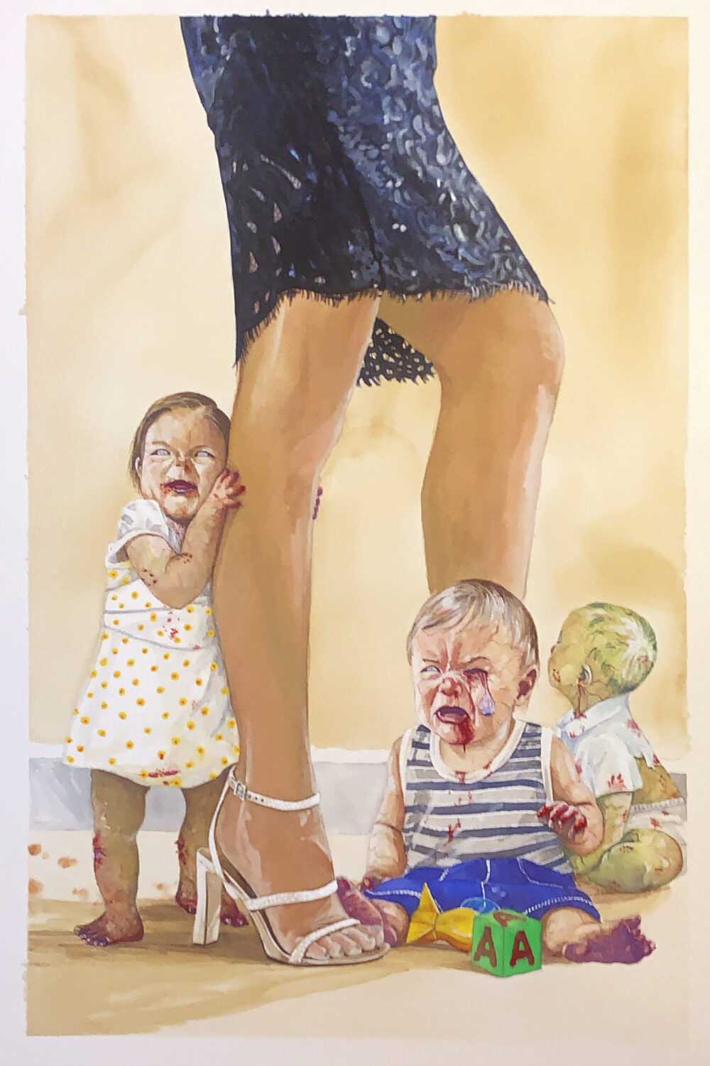This is a concept piece for (Hopefully) a Walking Dead spin off show. Mother with 3 children that are zombie babies...is she a zombie as well? The three children are in various stages of death/decay.