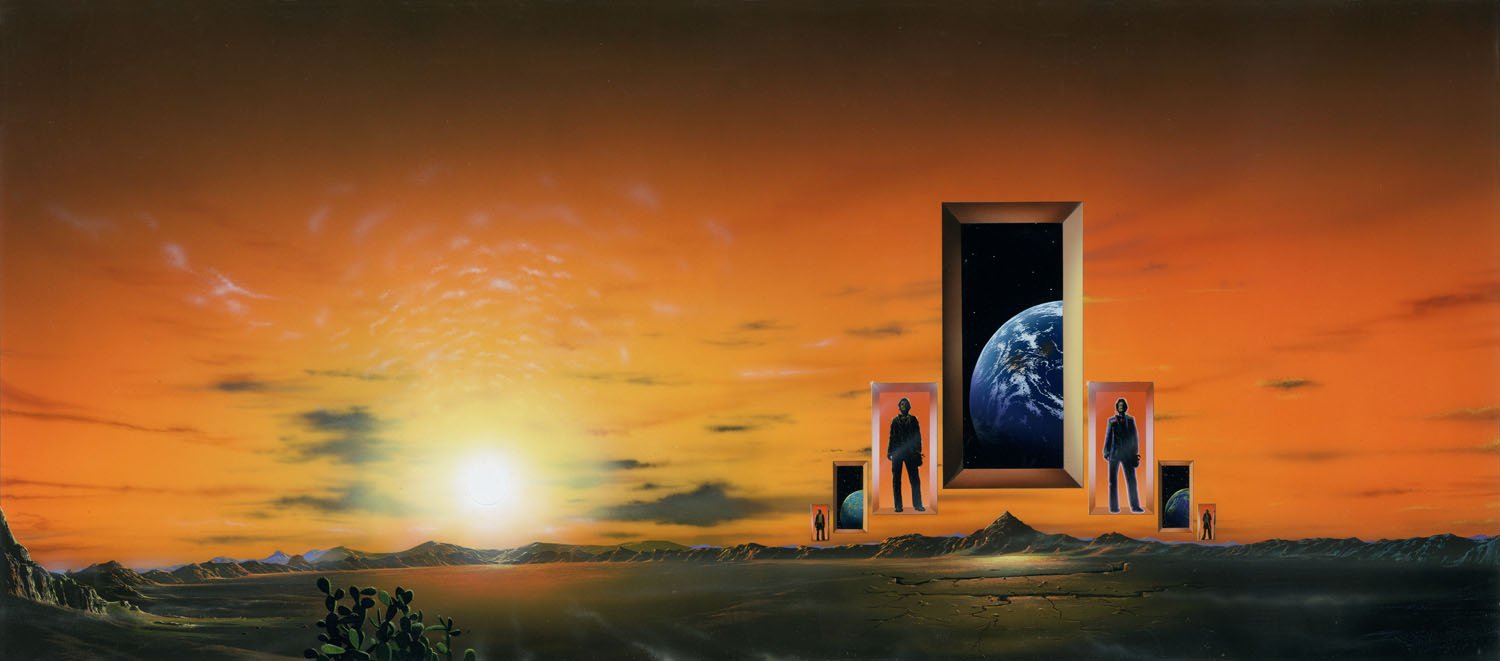 27 1/3 x 11 7/8 inches, gouache on board. 1975. Cover to the novel by Ward Moore.