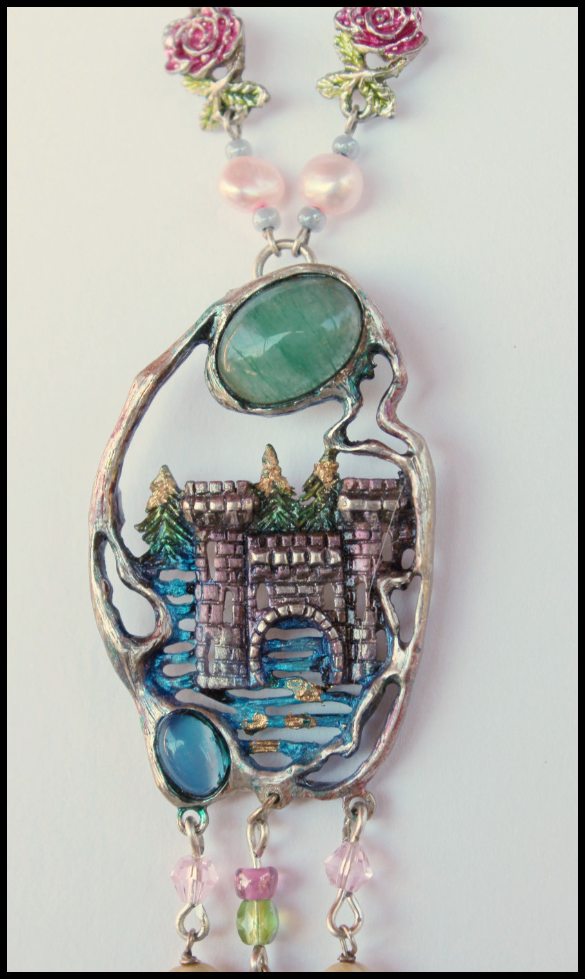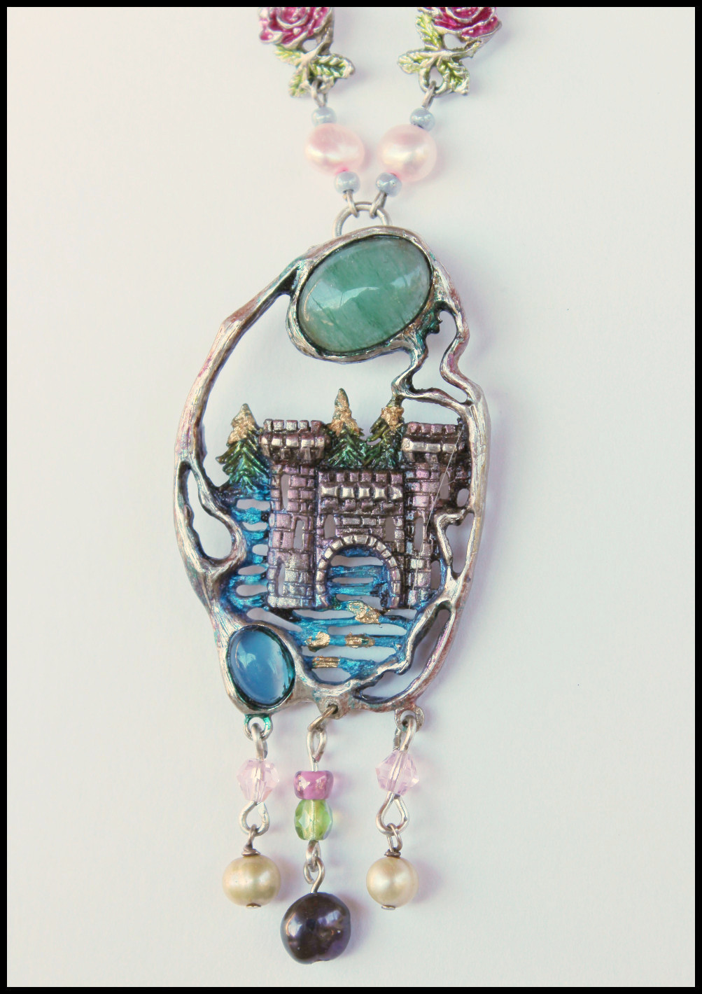 What could me more faerytale than a castle in the middle of a beautiful lake? Well, a silver and gemstone version to wear as a talisman!