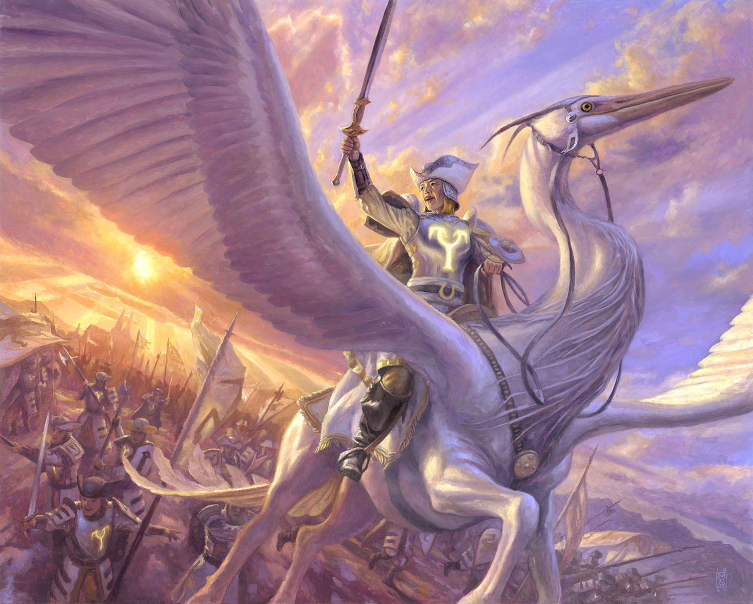 "Cathar's Call" was done for the Magic:the gathering TCG. It appears in the Midnight hunt expansion set.