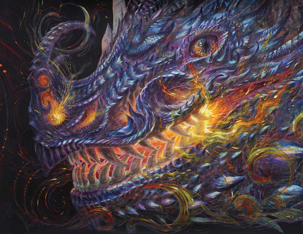A roaring dragon exhales the fire of a thousand new galaxies within a single breath.