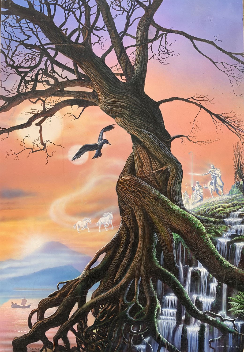 22 x 16 inches, acrylic on board. 1985. Cover for "Champions of the Sydhe" by Kenneth C. Flint, Bantam Books.
