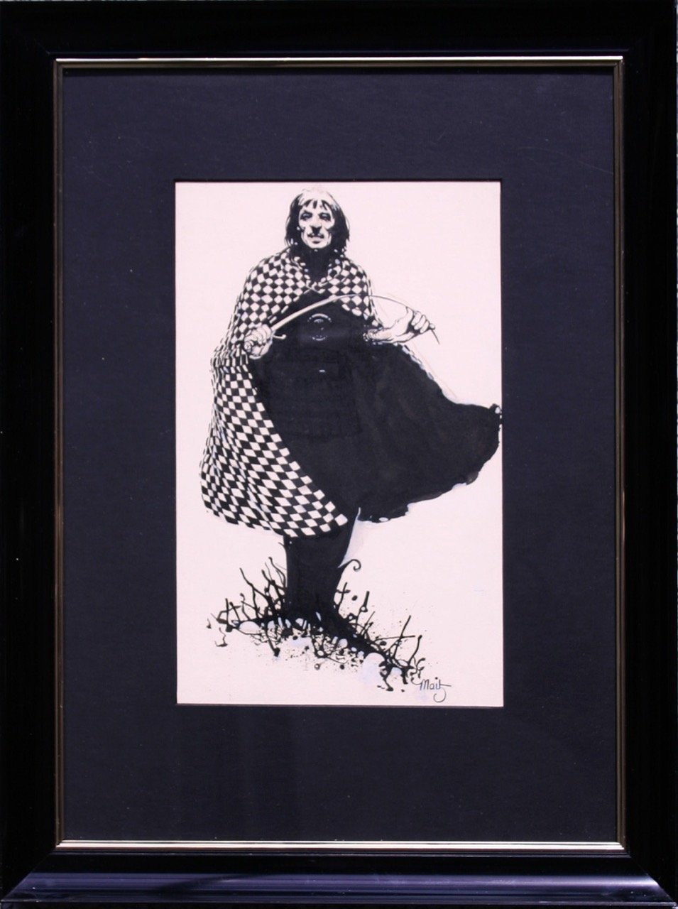 12 x 7.5 inches, ink on illustration board. Framed under plexiglass. DAW books frontispiece