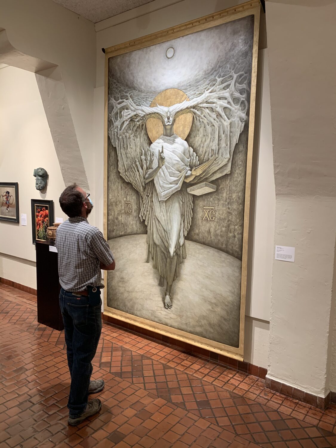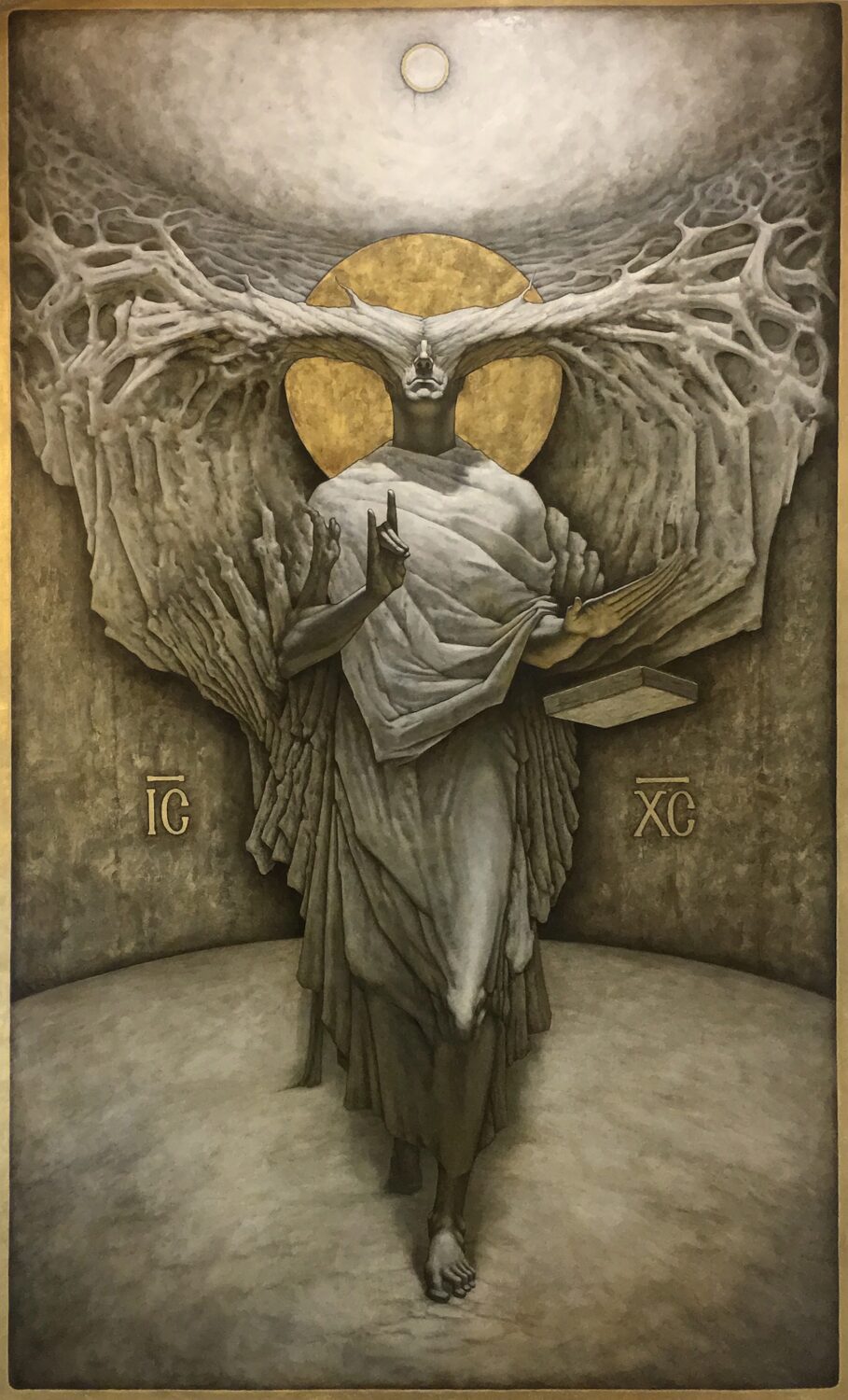 Christ Pantocrator is my own personal take on the Orthodox icon, with variations of both traditional and invented symbolism. It’s an attempt at another facet of the art historical imagery of Christ, combining the depiction of power, otherworldliness, and my own aesthetic into a distinctive artifact.