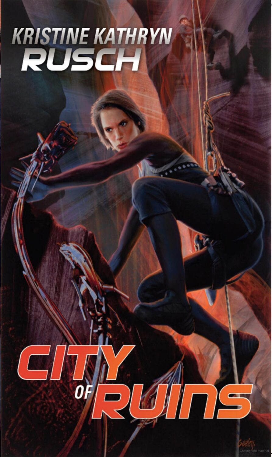 Cover image for PYR Books City of Ruins by Kristine Kathryn Rusch. This painting is also included in The Art of Dave Seeley. This painting is the original that was photographed for publication, and is a unique hybrid oil / digital illustration including areas of an underlying archival print showing in the final surface.