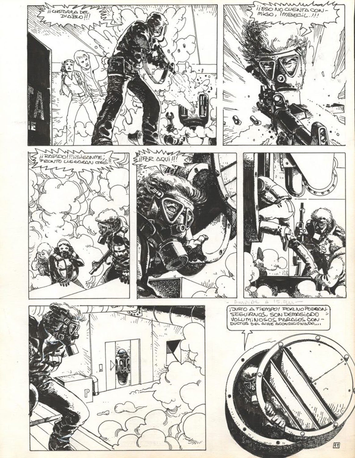 13.7 x 9.84 inches, India ink on paper. Terrific page from "Cuidad," one of the most important b&w books of Gimenez's career
