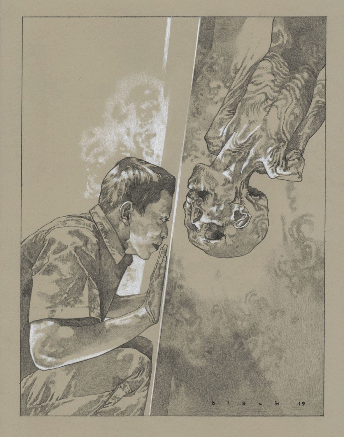 11 x 14 inches, Prismacolor on toned paper. Matted to 16 x 20 inches.