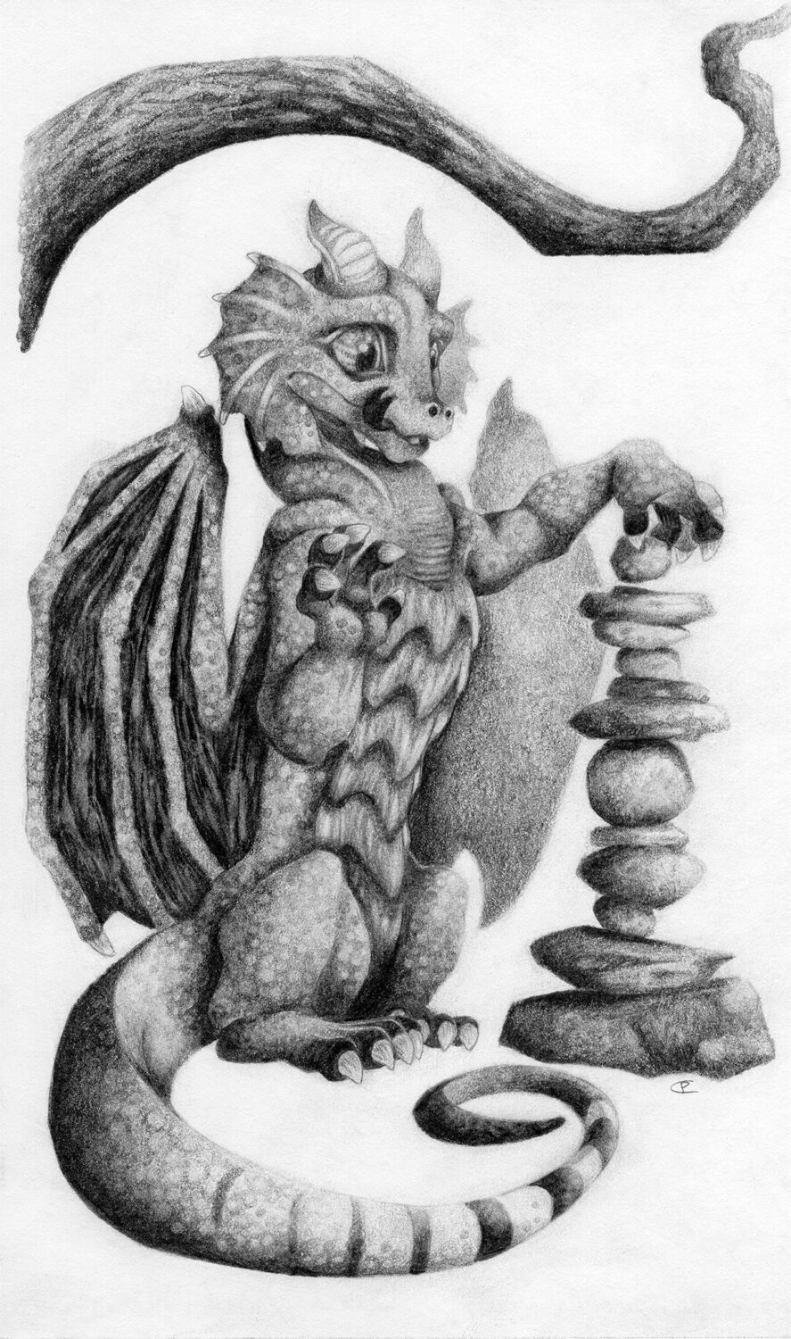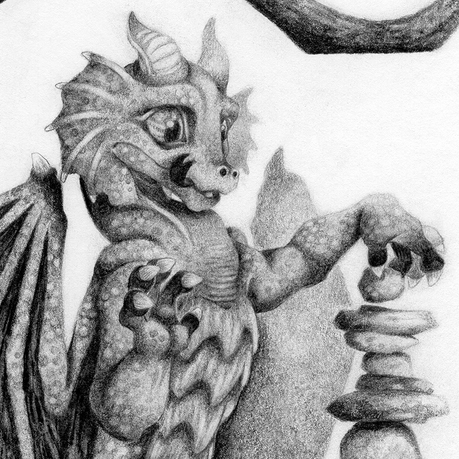 Aventurine, an entry in The Dragonlings Series. This ongoing collection of originally-designed baby dragons is based on semi-precious minerals and illustrated in graphite.