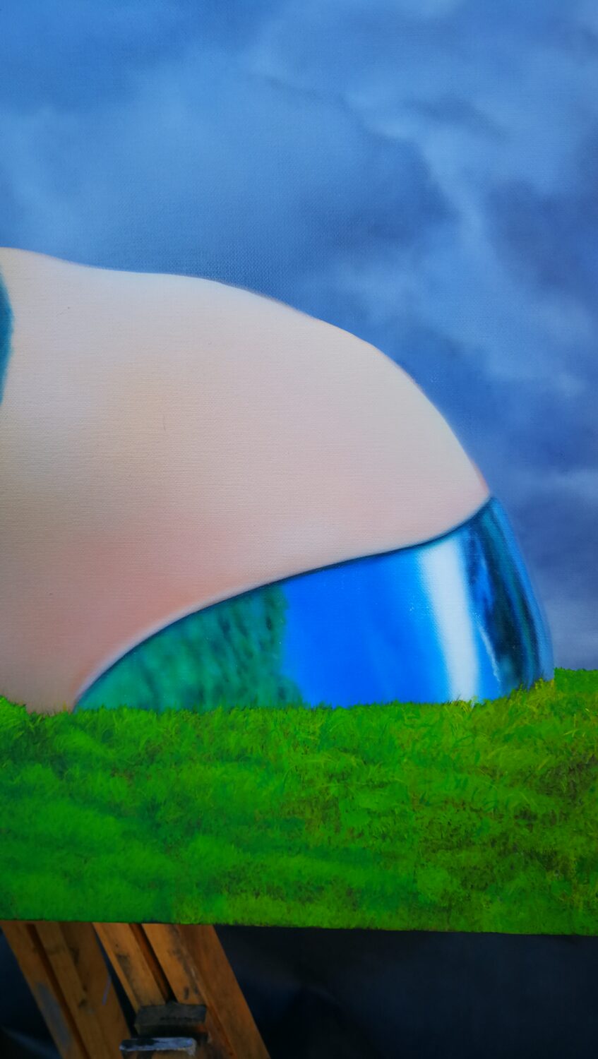 It almost seems like a monument that emerges from the lawn, an archaeological memory, a memory of a remote human presence, one Stonehenge of a distant future: a monument to remember a geological era of this planet in which the Humanity was the master, replacing a God, that claim to create himself.