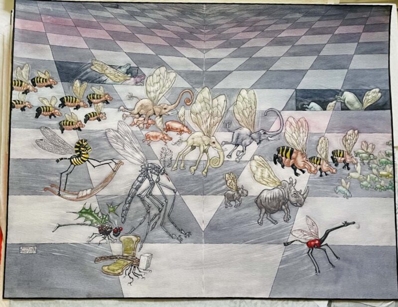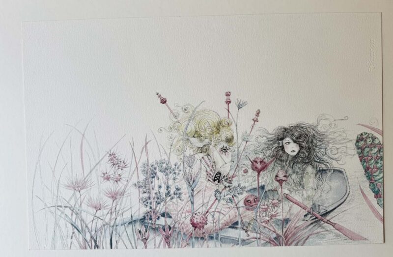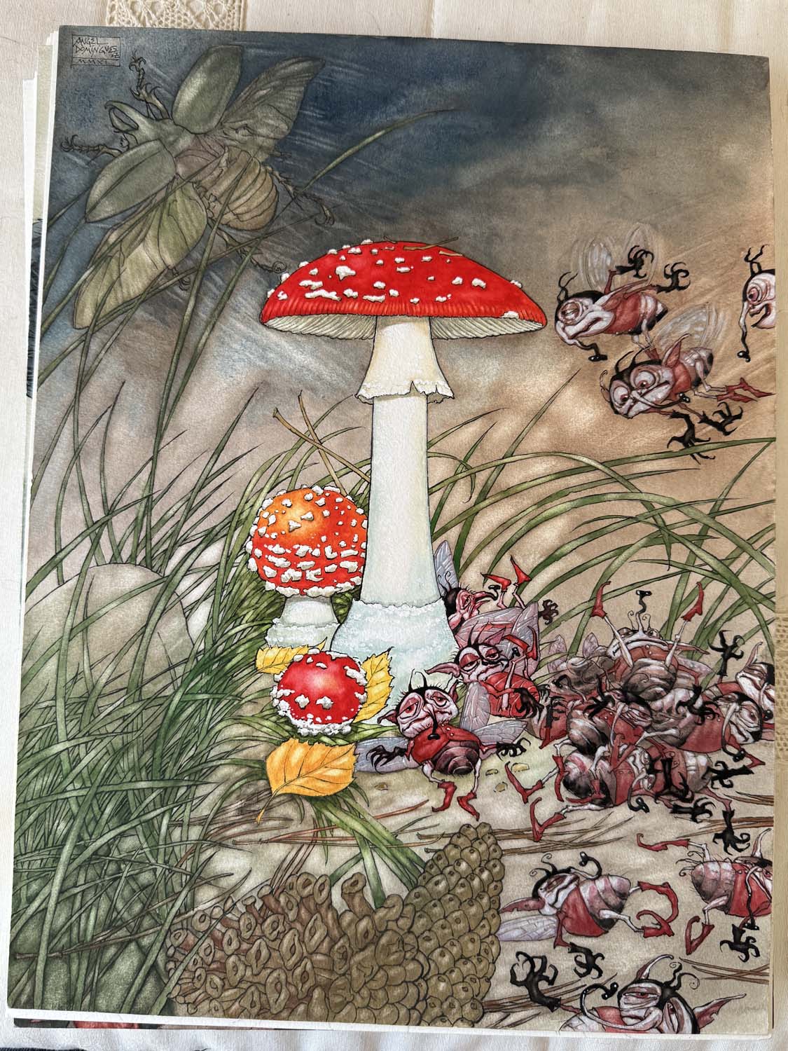 Interior illustration for "Pequeño Buscasetas" (Vox, 2011).This was a field guide to mushrooms with whimsical faeries - the best kind of field guide! We have nearly all of the interior illustrations from this book - drop us a note if you'd like to see them!