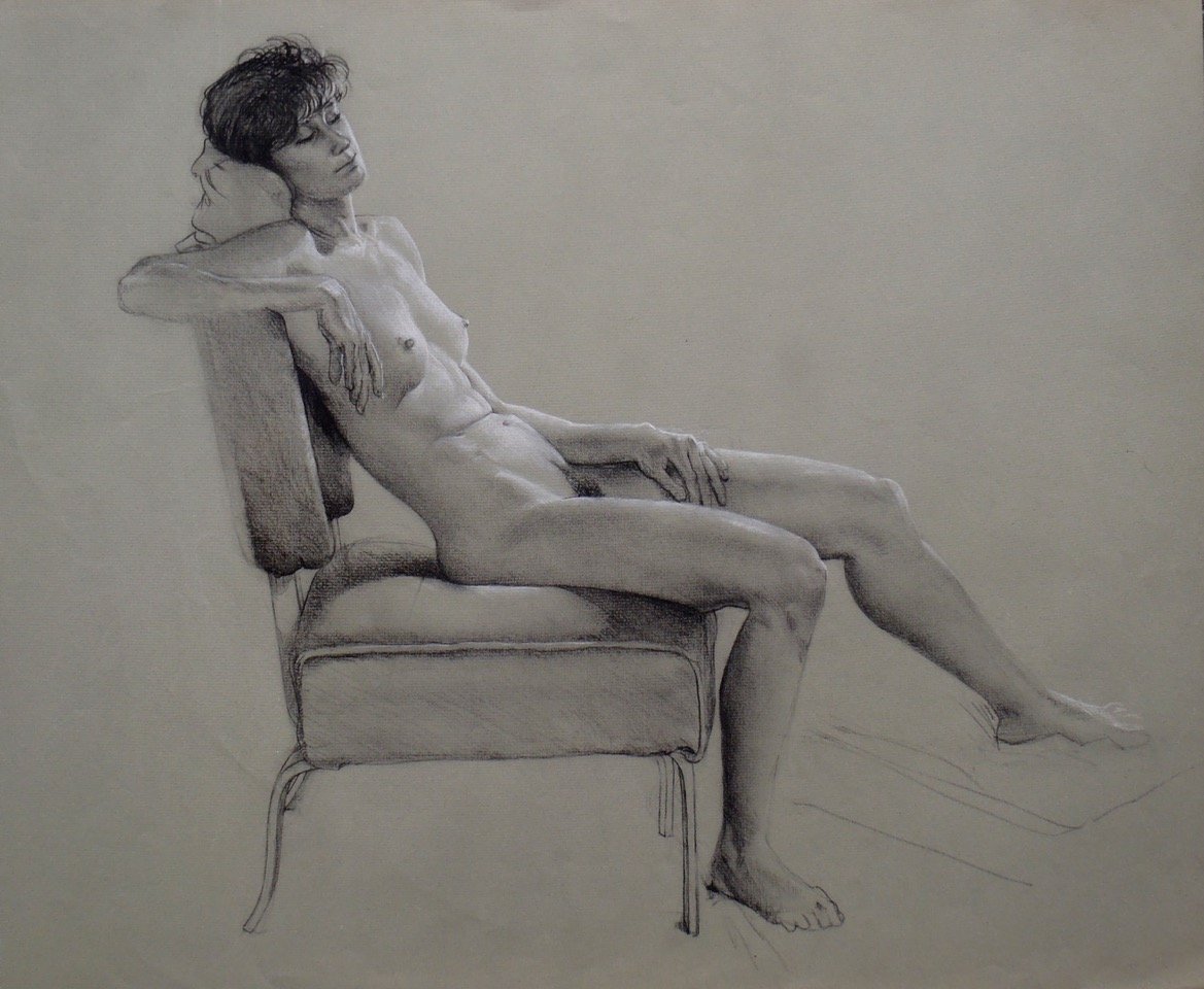 18 x 22 inches, charcoal with white chalk pencil on toned paper.