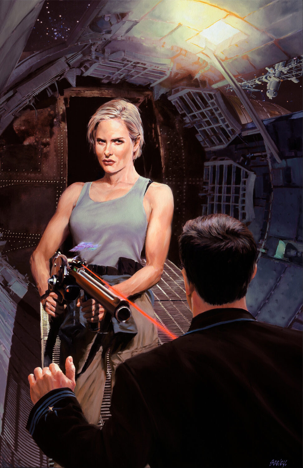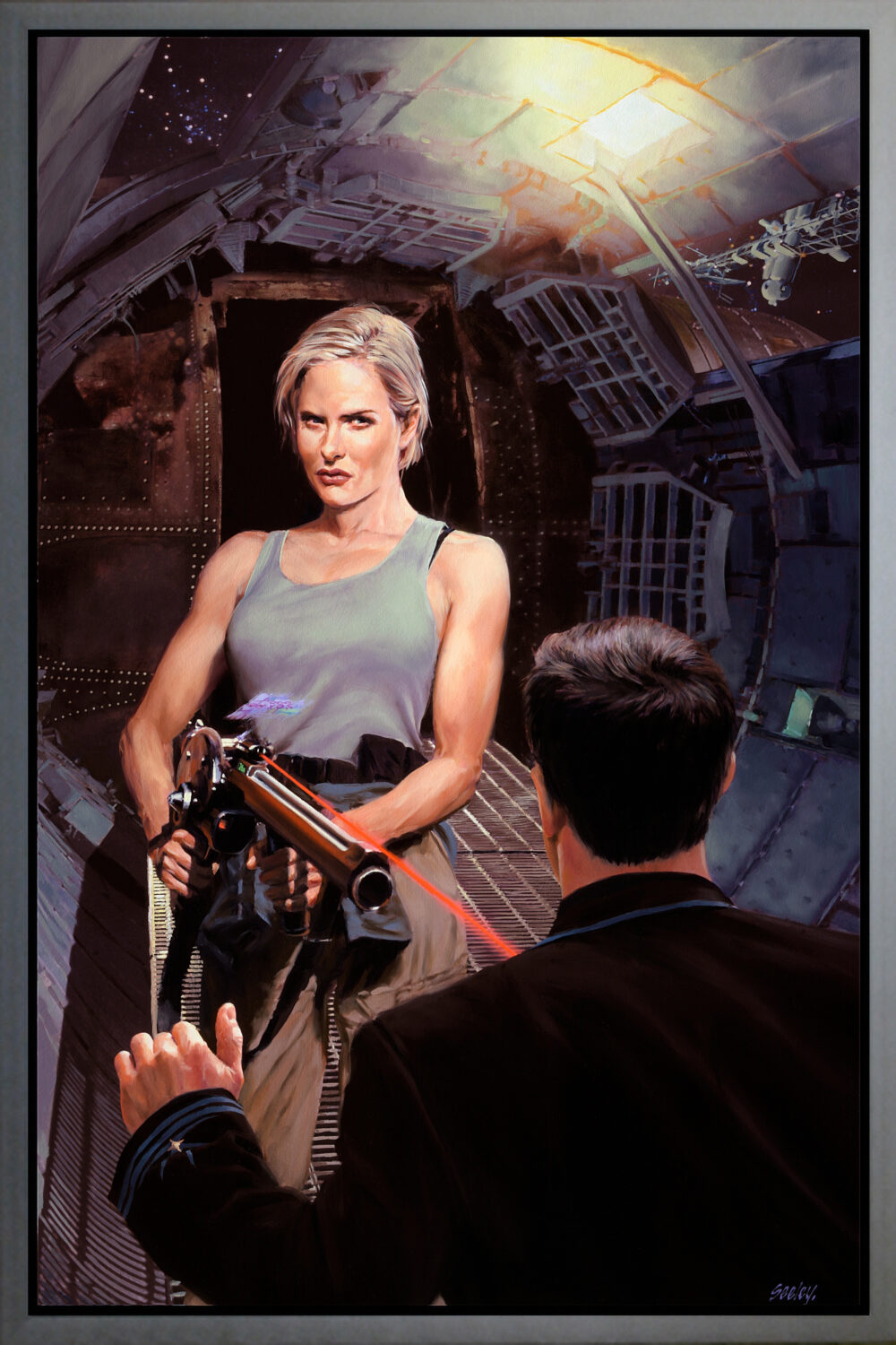 Finders Keepers - by Linnea Sinclair - Bantam Books - oil on paper on panel 23" x 35"...Nielsen Style 97 pewter finish museum frame.