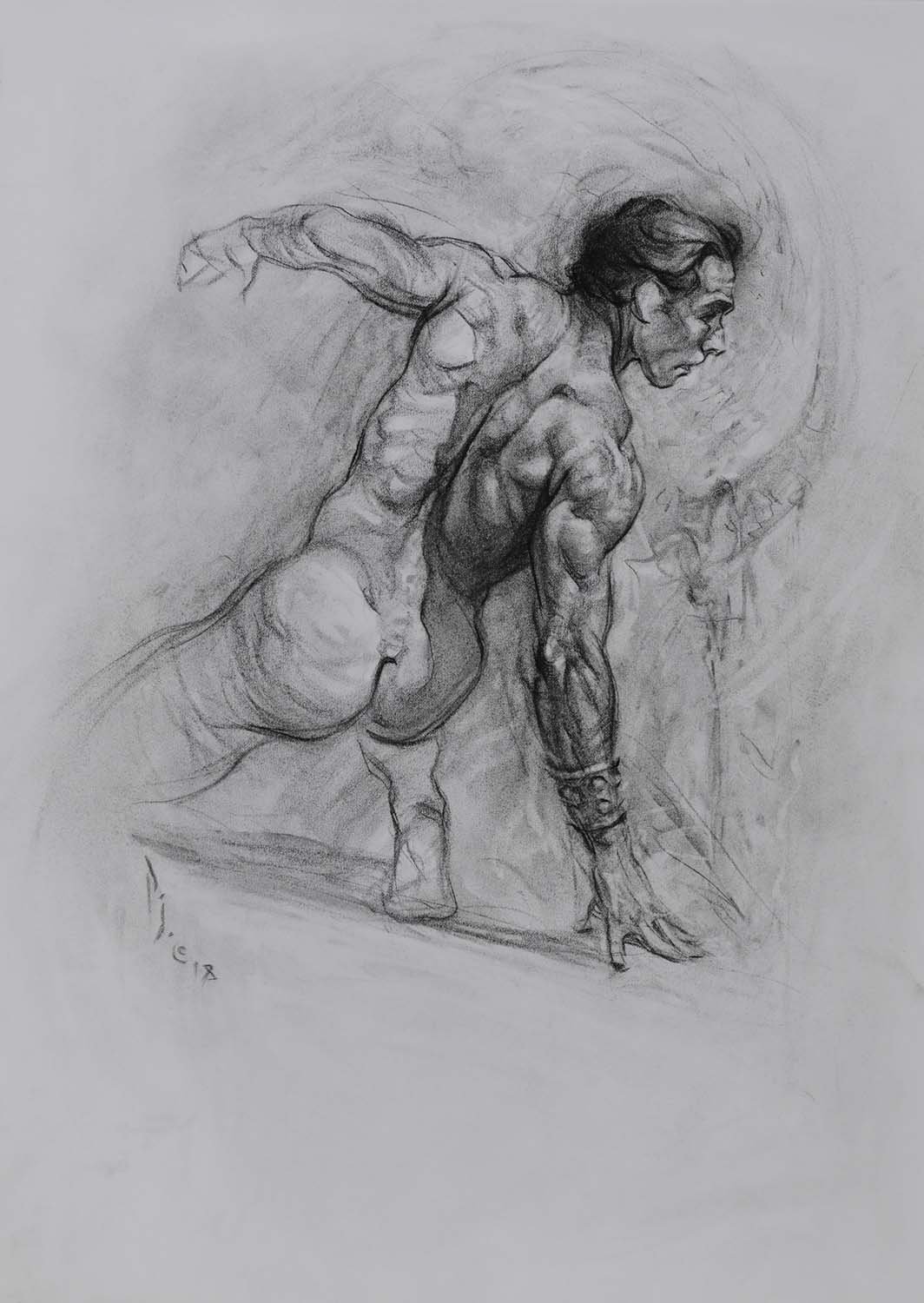 11.69 x 16.53 inches (A3 size), charcoal pencil on archival paper. 2018.