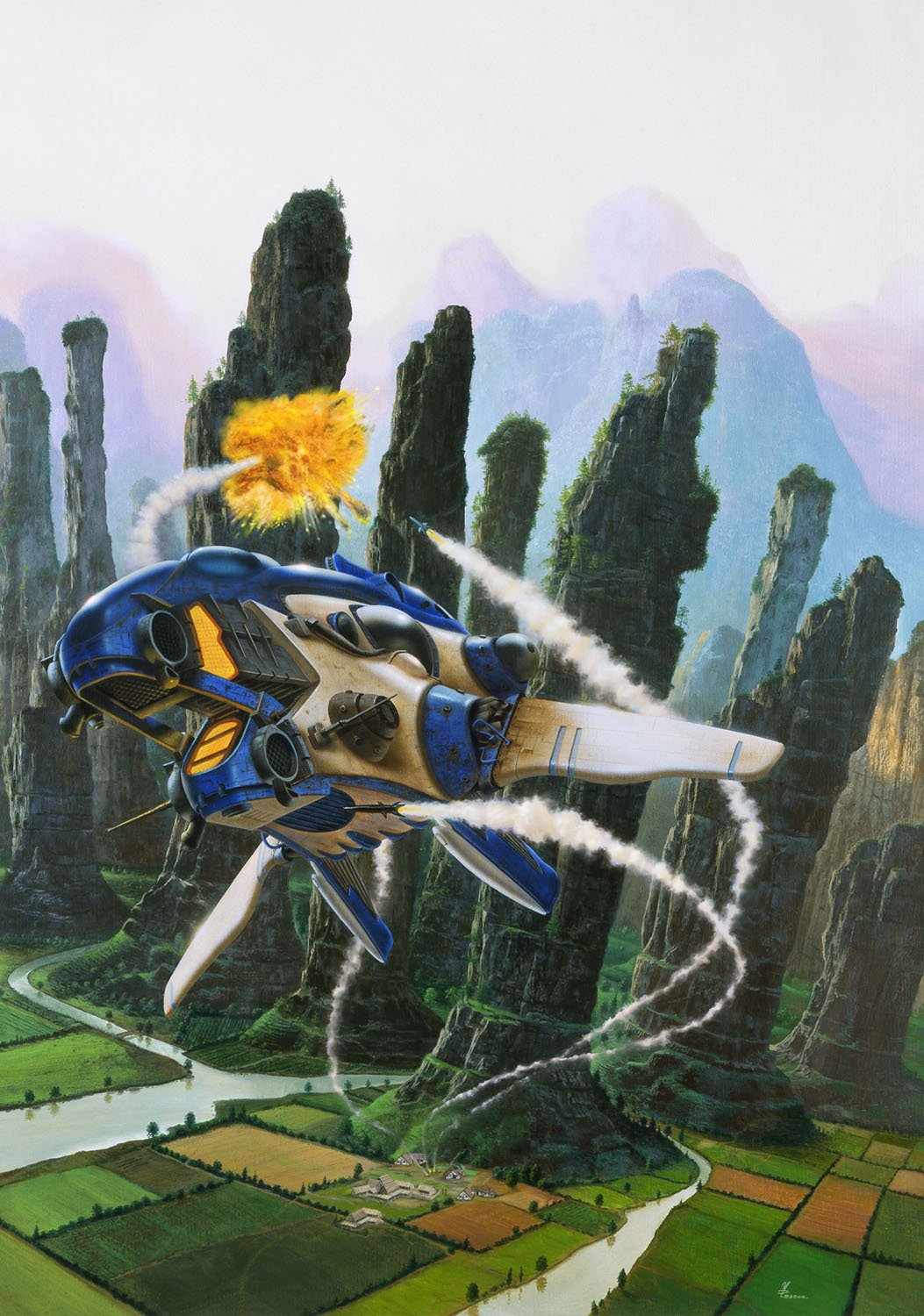 14.5 x 21.5 inches, Acrylic and Oil on Gessoed illustration Board. 2002. Painting for Anne McCaffrey’s Freedoms series Published by Science fiction book club.