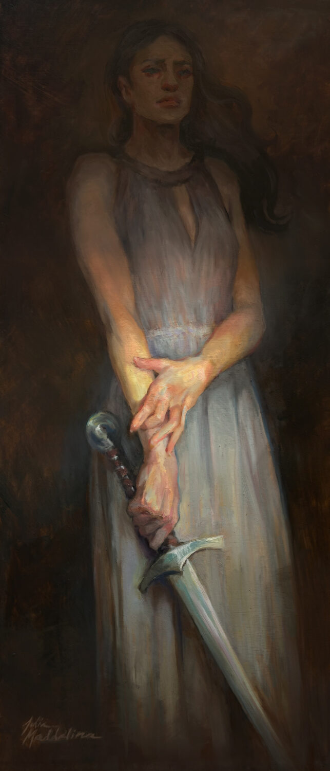 A study in value control in oil painting, and eye direction. Concept for the painting was inspired just in general by the heroines in all the fantasy stories that we love.