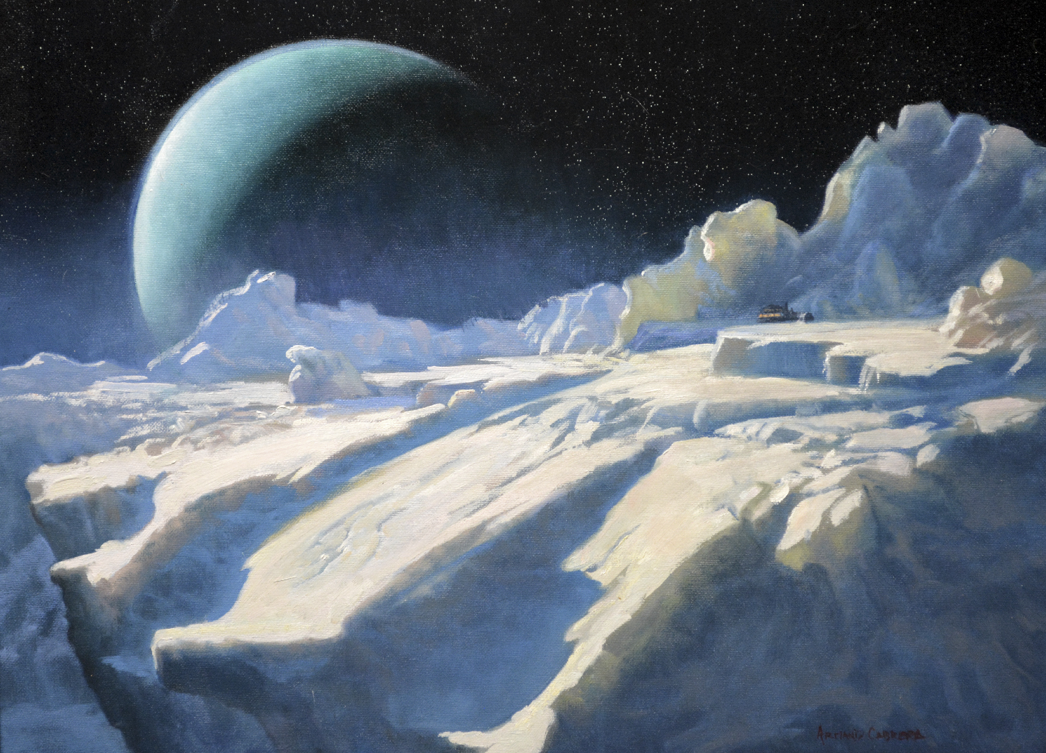 Unframed. An imagined research station on an icy moon of a gas giant.
