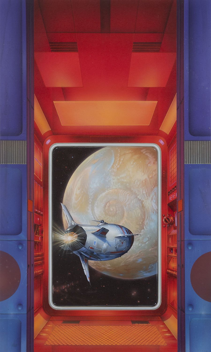 20 x 12 inches, acrylic on illustration board. 1992. Cover illustration for "Ammonite" by Nicola Griffith, Ballantine Del Ray.