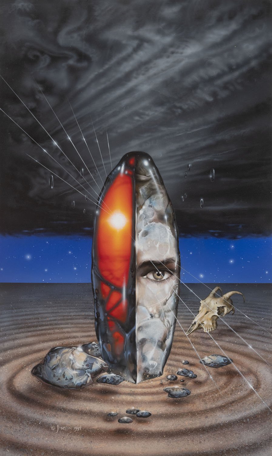 20 x 12 inches, acrylic on illustration board. 1994. Cover for "The Stone Garden" by Mary Rosenblum, Ballantine Del Ray.