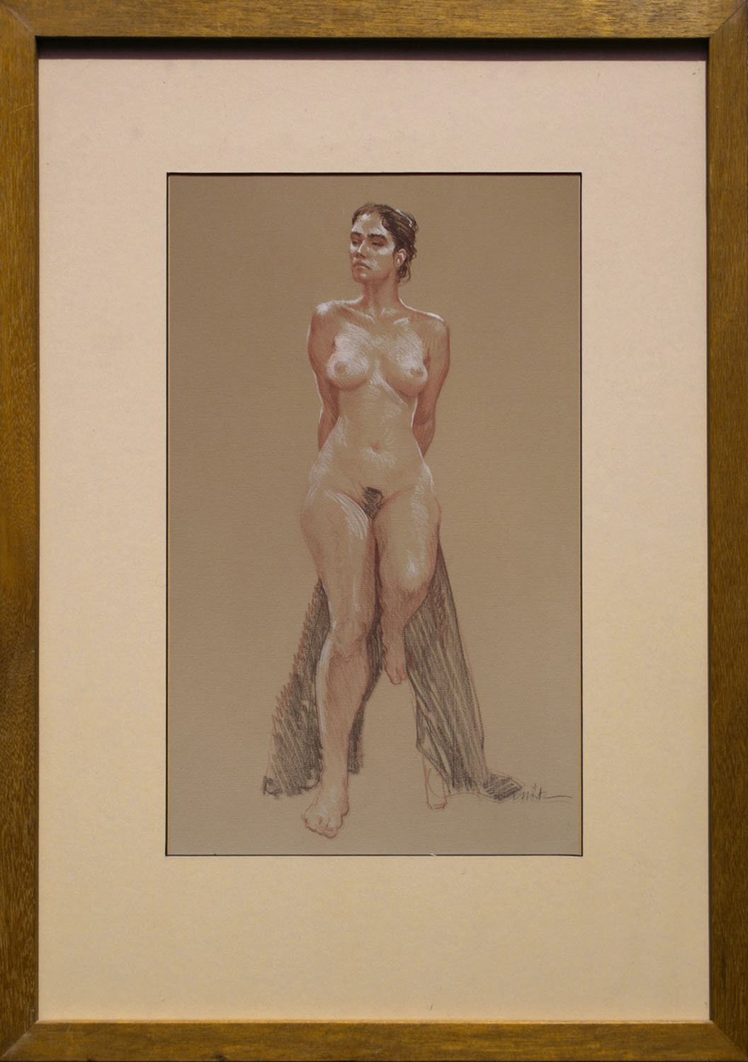 18 x 11 inches, conte pencil on paper. Framed under plexiglass.