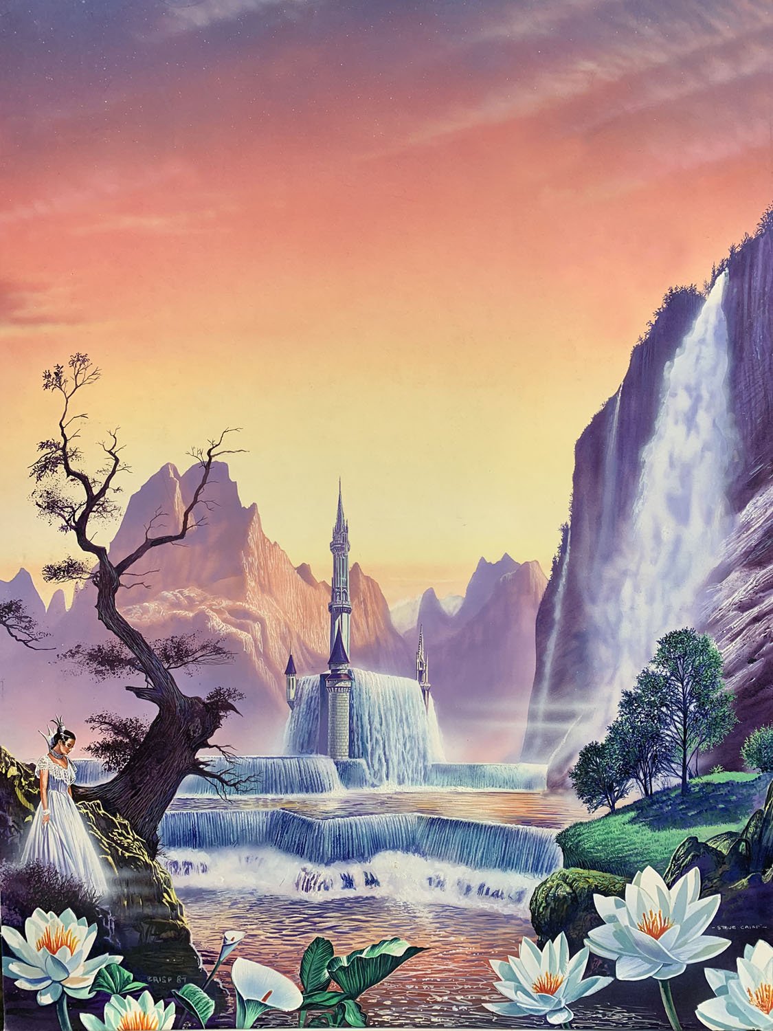 24 x 18 inches, acrylic on board. 1987. Cover for "Keepers of Edanvant" by Carole Nelson Douglas, Corgi Books.