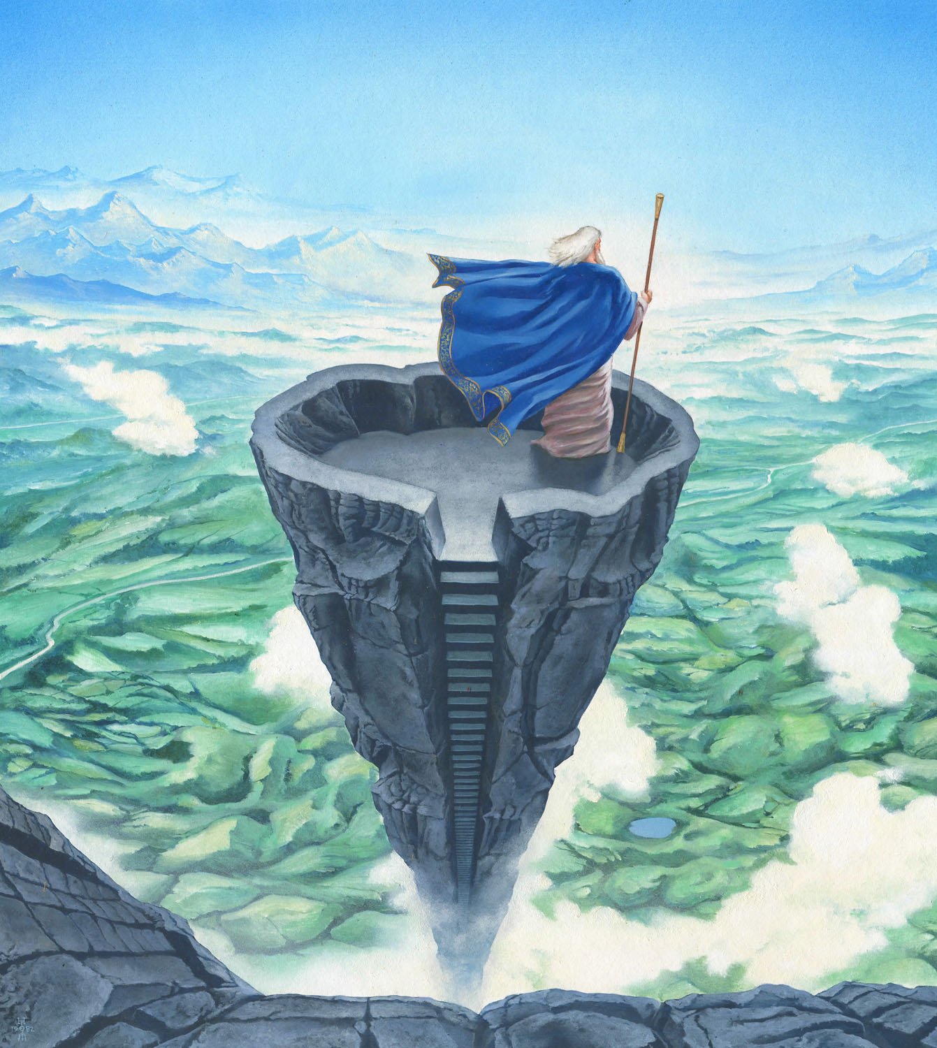12 x 13.5 inches, acrylic on board. 1982. Realms of Fantasy Dragon's World.
