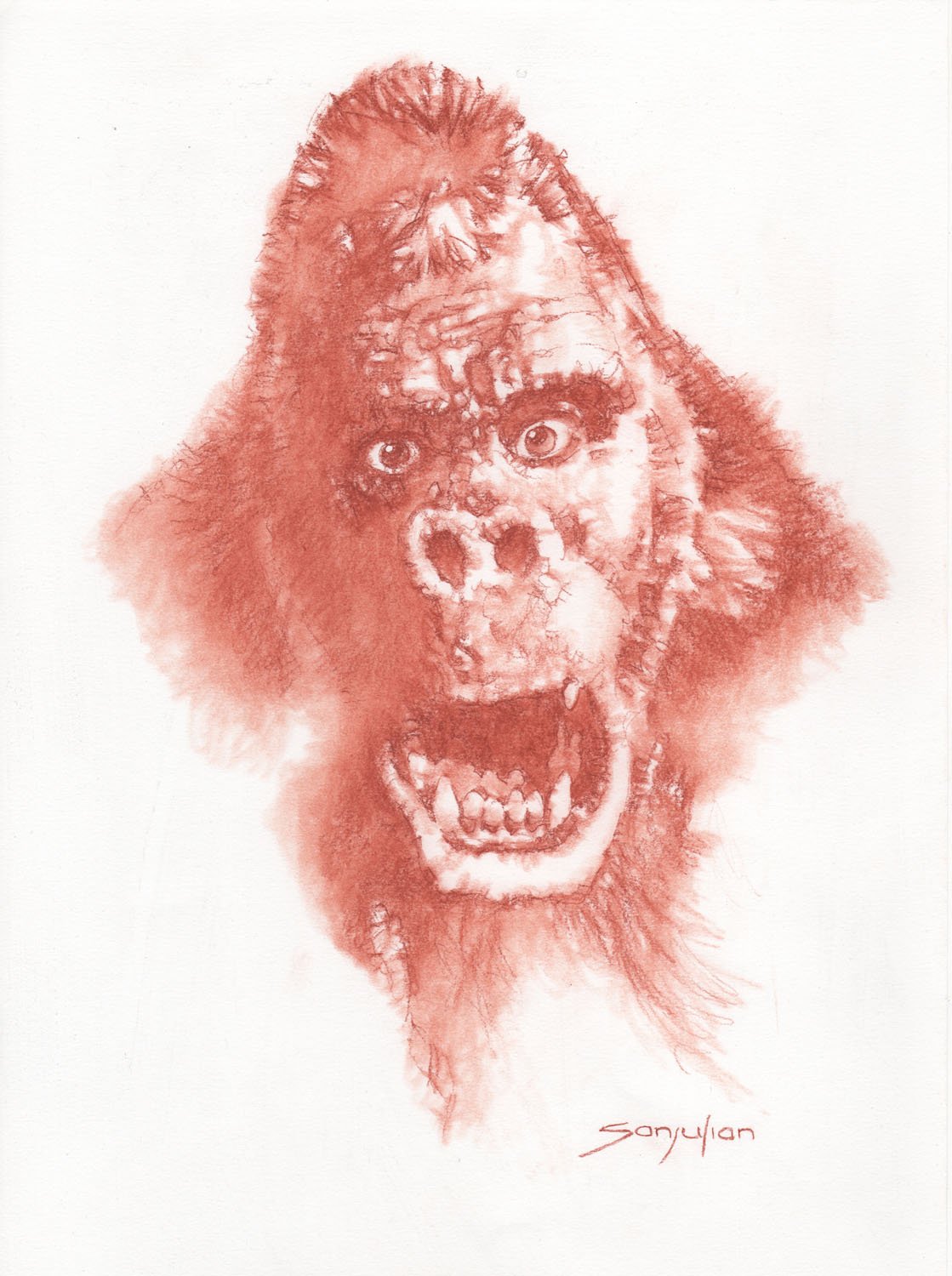 12 x 16 inches, sanguine pencil on paper. 2020.