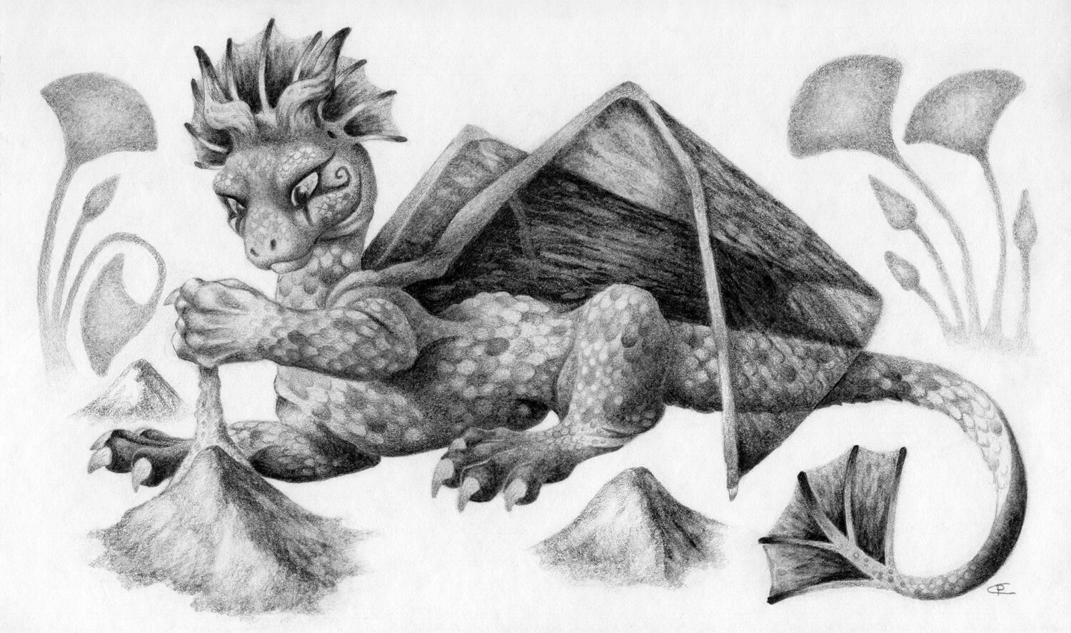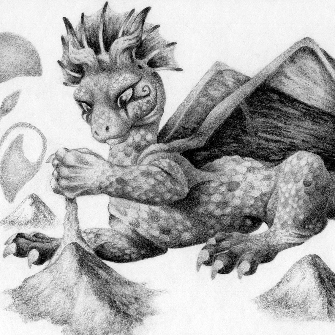 Aventurine, an entry in The Dragonlings Series. This ongoing collection of originally-designed baby dragons is based on semi-precious minerals and illustrated in graphite.