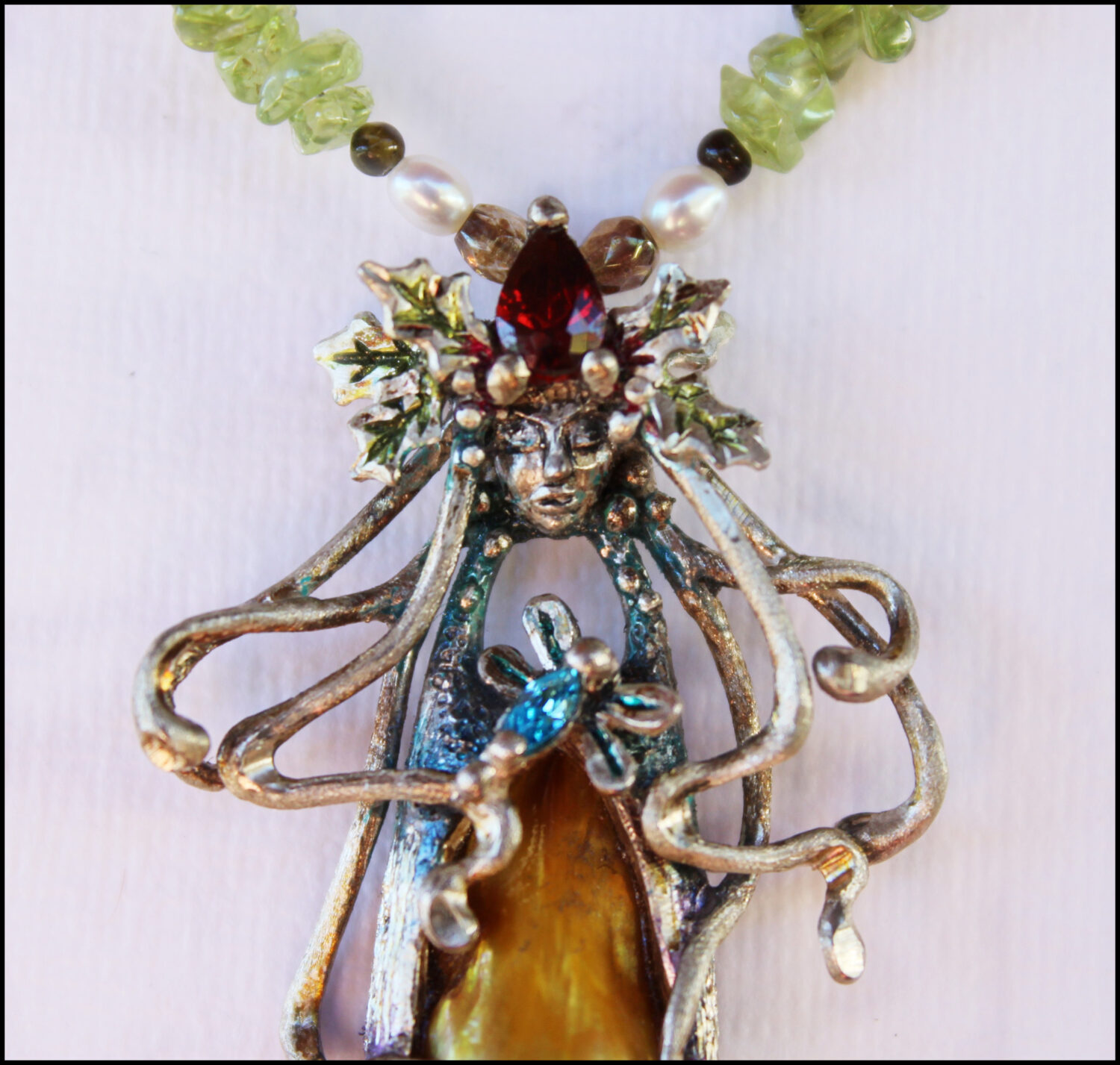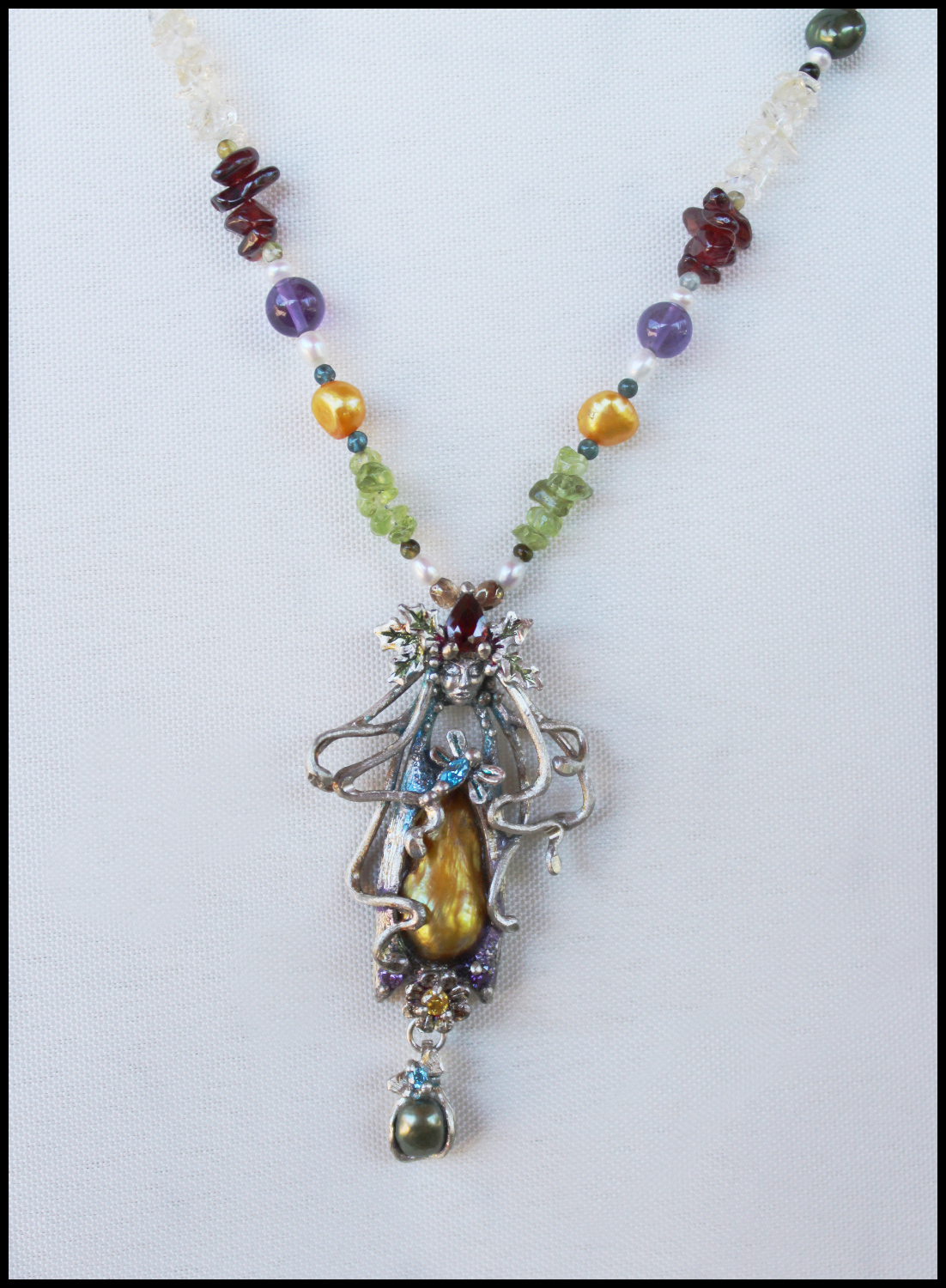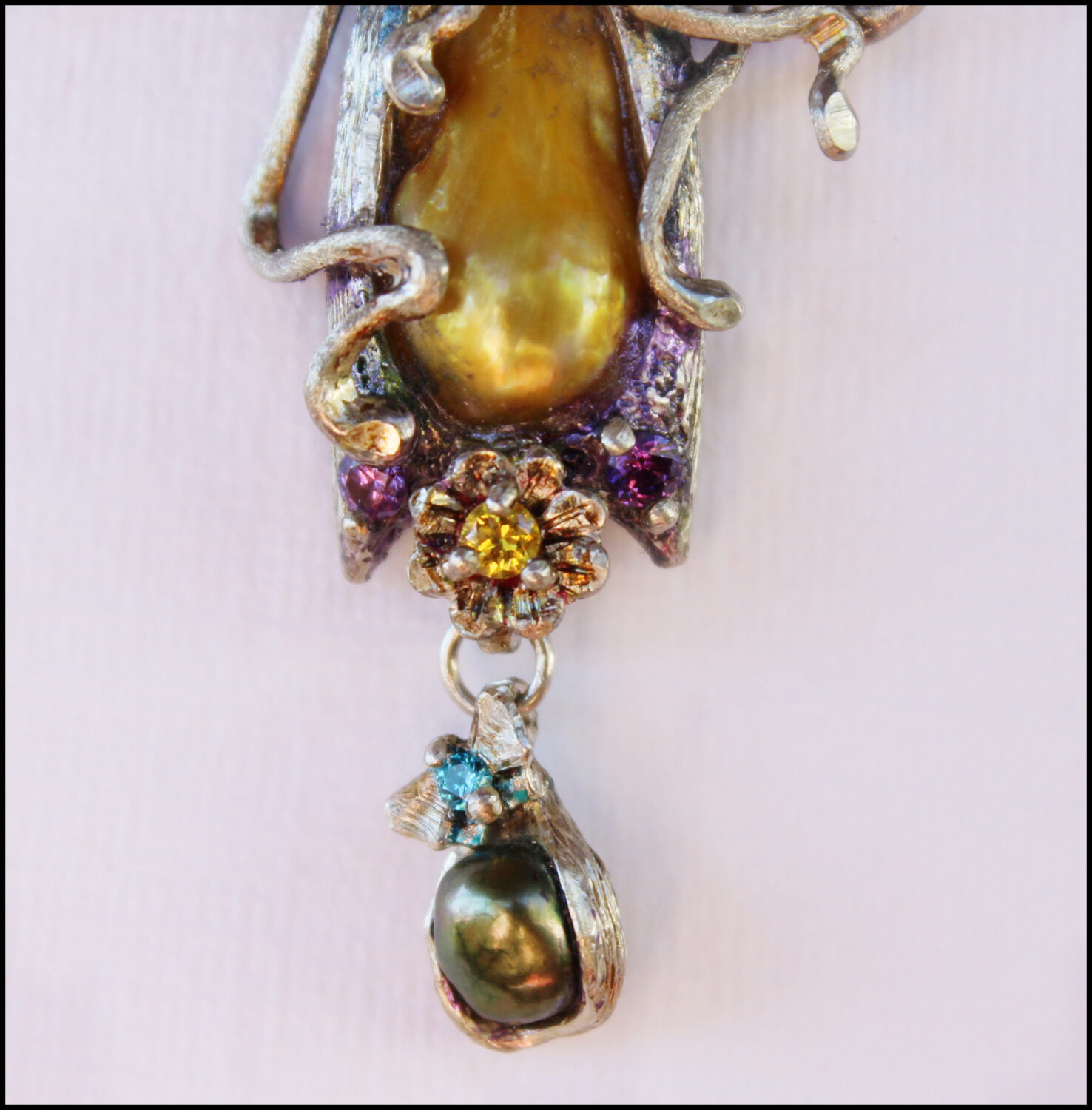 Little Moth is a sweet small creature, sometimes you can see her just from the corner of your eye in the twilight. She is full of colour and magic, despite her size full of power too.This is a Silver piece with mixed gemstones and enamels
