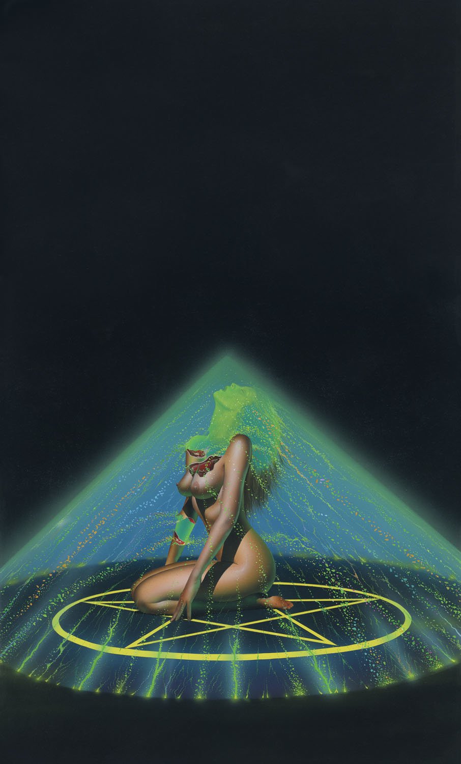 9 5/16 x 15 3/8 inches, gouache on board. 1985. Unused cover for Michael Moorcock's novel of the same name.