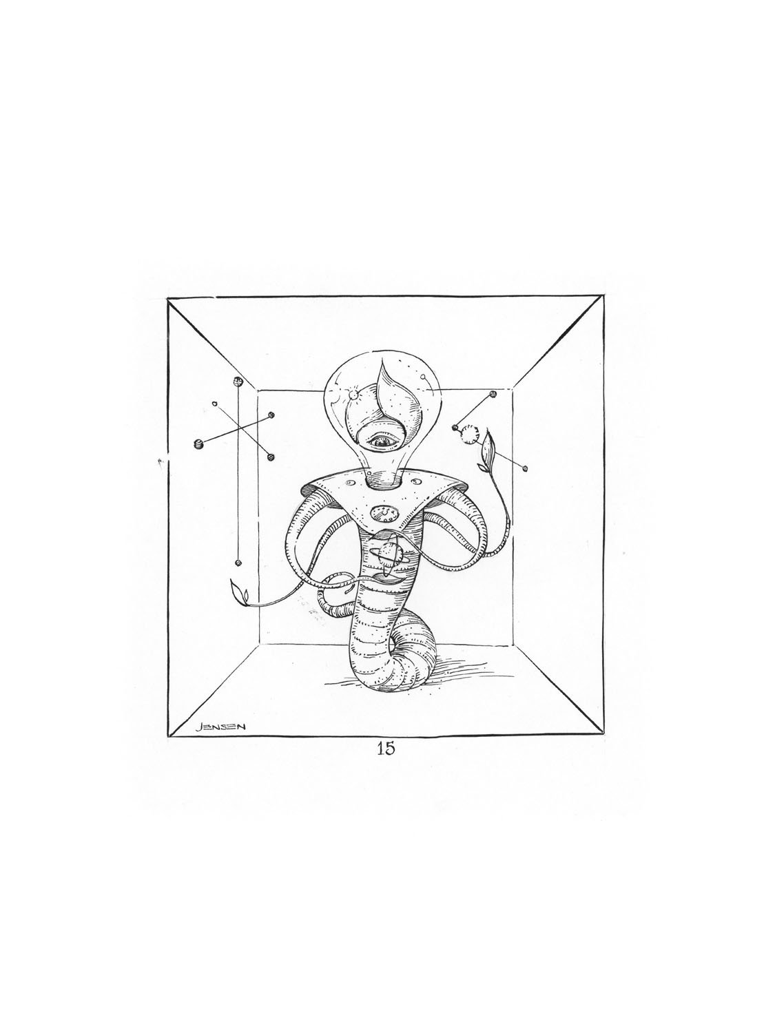 5 inch square image on 12 x 9 board, sumi ink on bristol board.