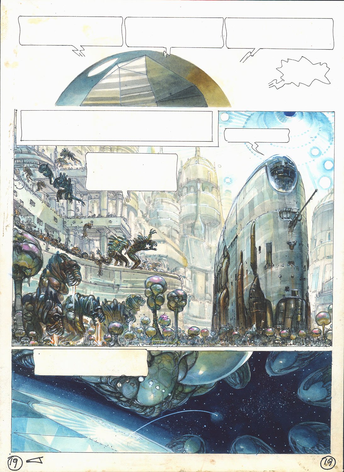 13.7 x 9.84 inches, watercolor and acrylic on paper. Color page from the "Metabarons" saga