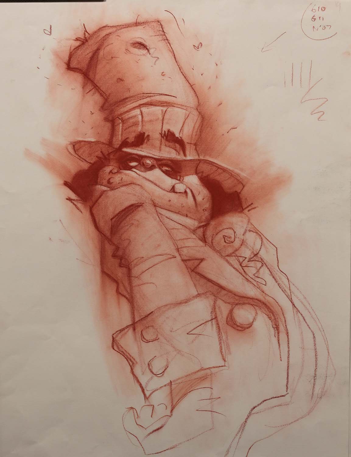 Large Sanguine Pastel Drawing on Heavy Paper Stock: 22.8” x 16.8”