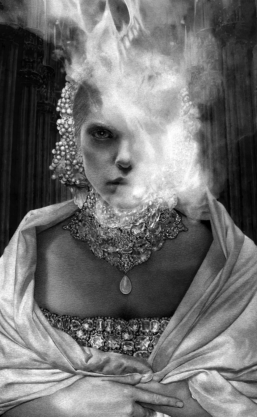 This piece is based on an original narrative and part of a larger series titled “Nocturne.” Each installment in the collection adds another layer to the story, highlighting particular characters and scenes. “Nocturne IV” features the story's mysterious and eldritch antagonist.