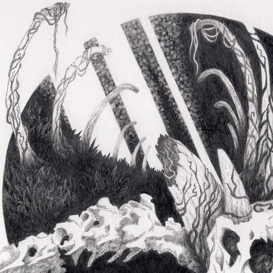 Graphite on 9x12 inch Strathmore 500 Series Mixed Media Board. Framed in gold, and mounted on black linen backing paper.