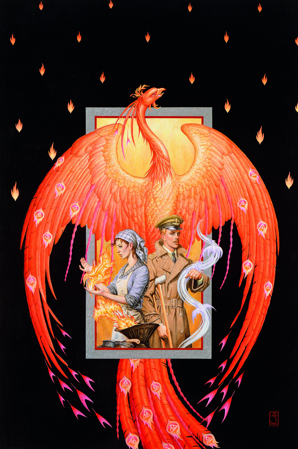 Acrylic on board, 4/04, 27 x 18 inches, signed lower right. For the novel by Mercedes Lackey. This cover is for one of her Elemental Masters Series, and the inspiration for everything in that series is well known fairy tales from around the world. The kernel for this one comes from the original Cinderella, but like much of the series, takes place in an alternate 19 to 20 century magical Britain.