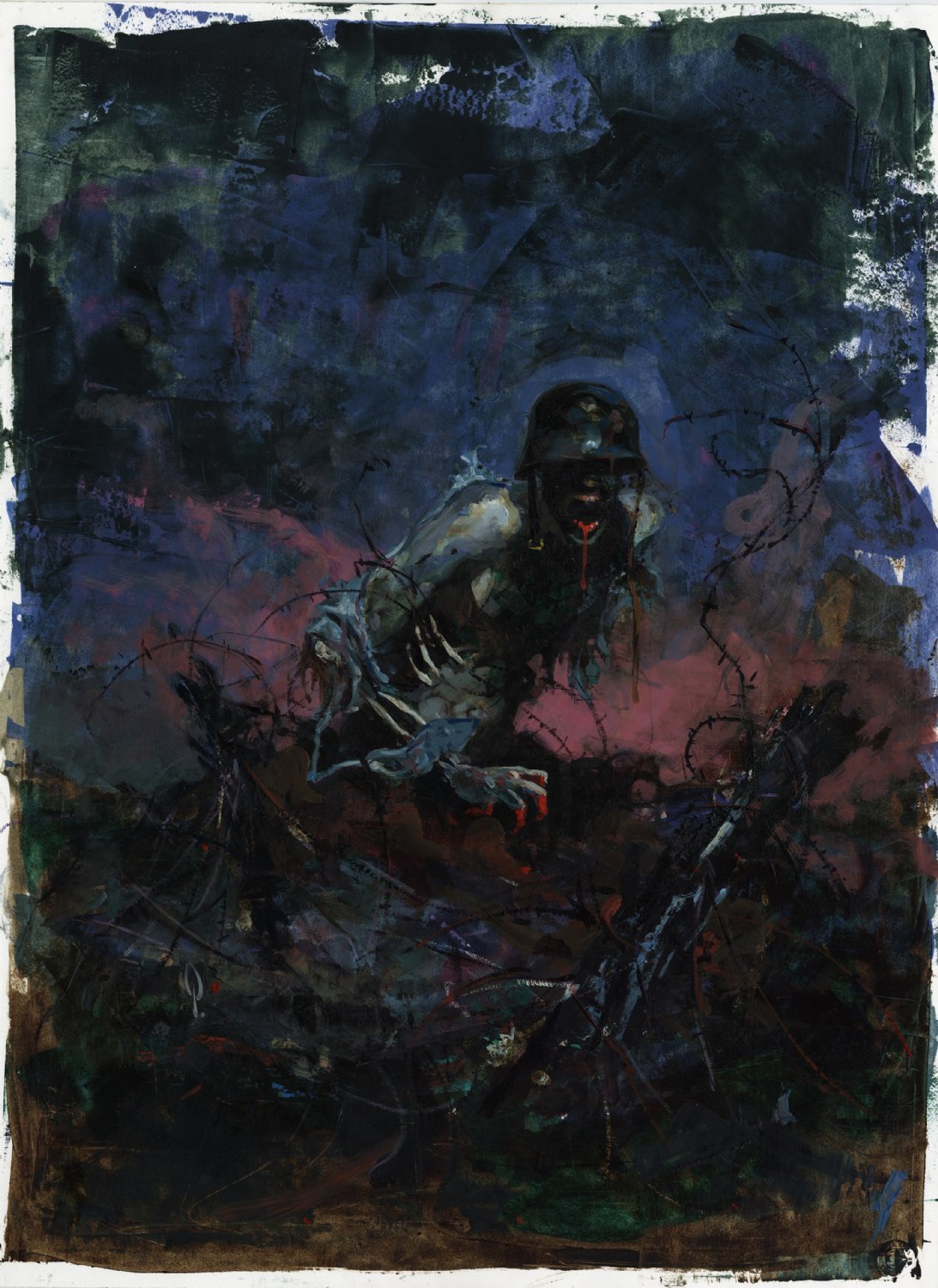 22 x 30 inches, mixed media on paper. Cover to RED FOG by Chris Williams
