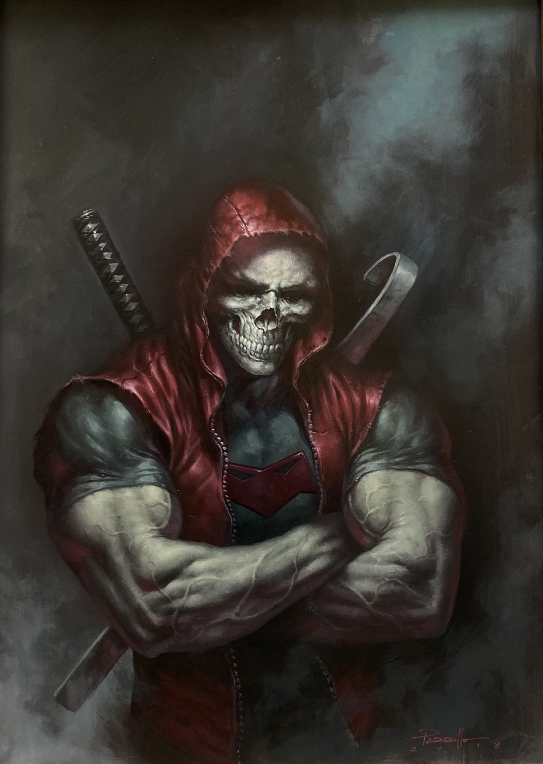 20 x 28 inches, oil and acrylic on canvas. Cover to "Red Hood" for DC Comics.