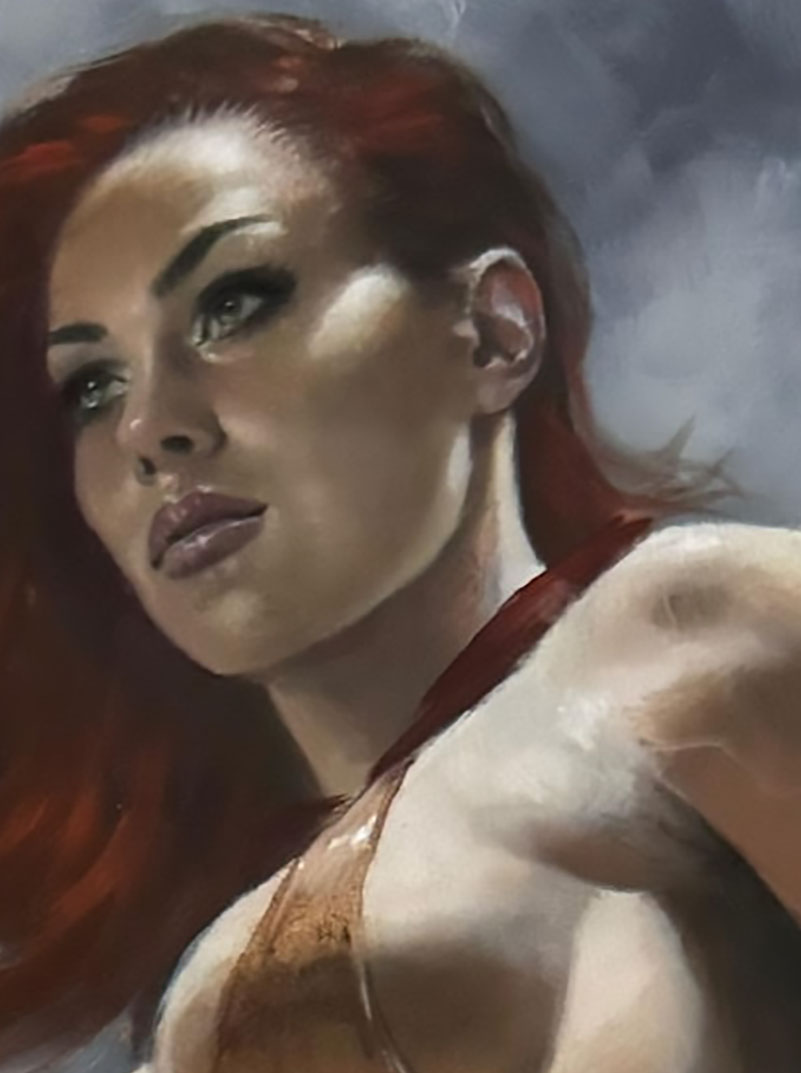 Upcoming Red Sonja cover - email us for a full, unblurred image! (We cannot post clean images on the web until after publication.)