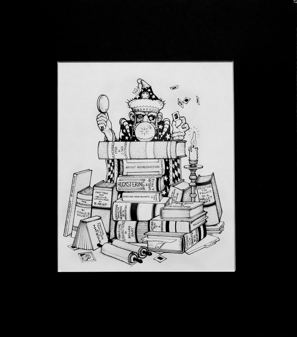 10 x 8 inches, ink on illustration board. Part of a series of 8 pieces created to represent Don making a painting - appeared in FIRST MAITZ as well as the WorldCon program book. The full series is available - please inquire for images of the other seven pieces!