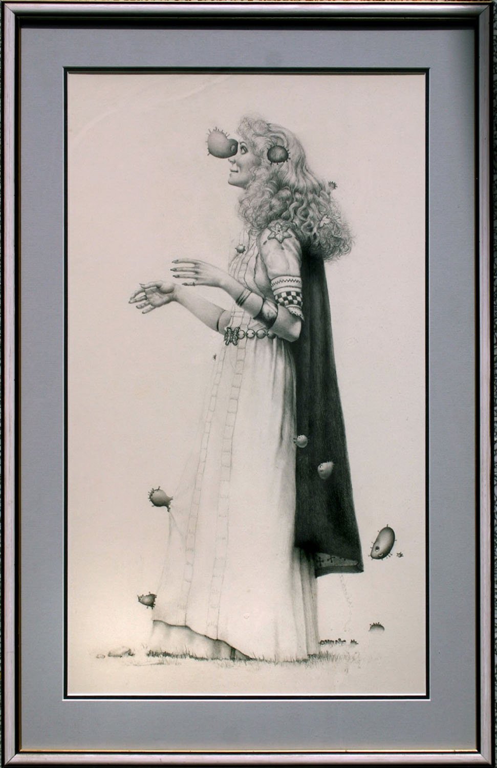 29 x 17 inches, graphite on illustration board. Framed under glass.